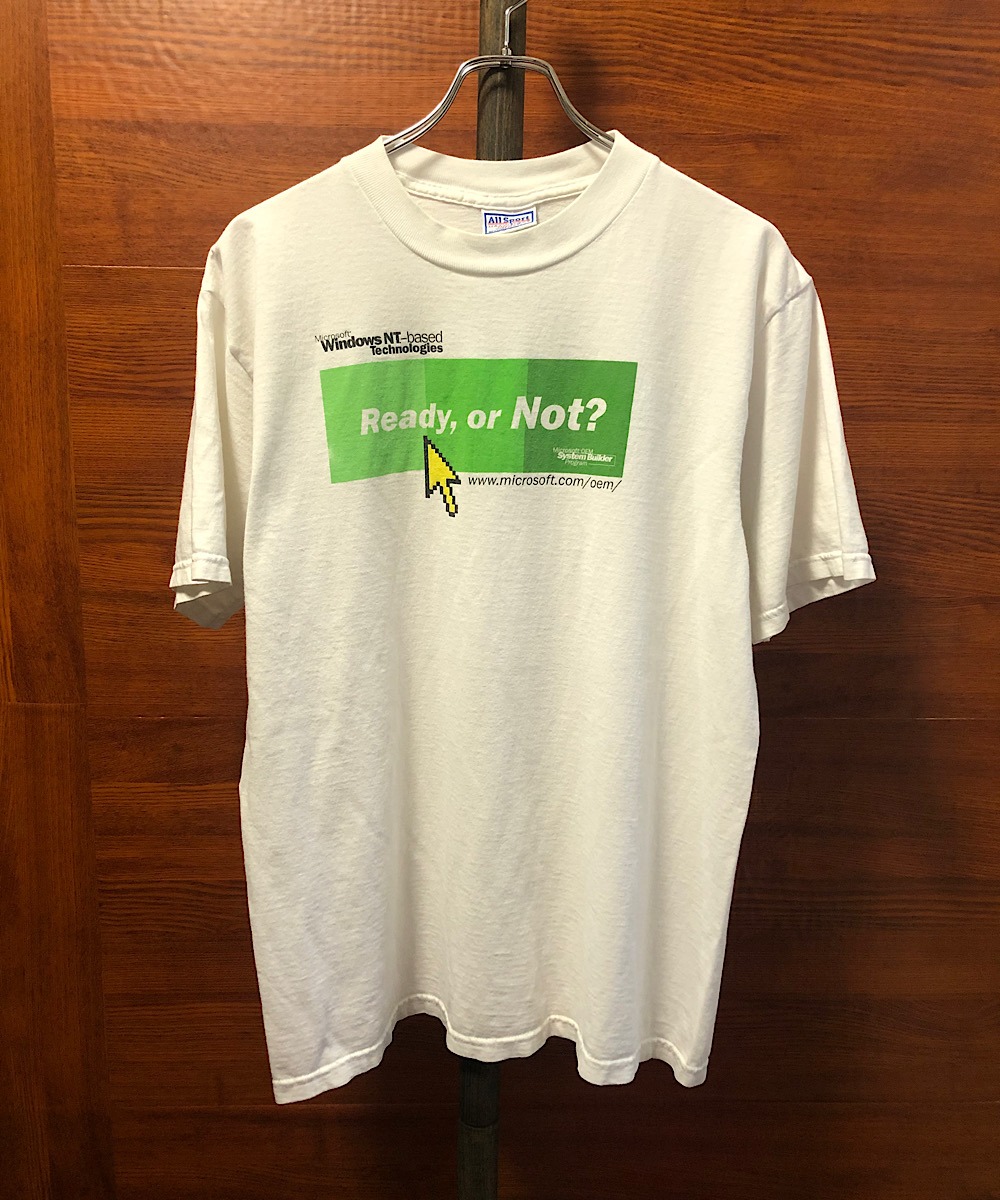 80s Microsoft T-shirt size L7,700円1987年に発売開始されたMicrosoftのOSがデザインされたTシャツ。おそらく当時の電化製品店のマネージャーのもの。嬉しいONEITAボディ、ポリエステル50%コットン50%。