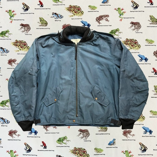 【実寸(cm)】 ・着丈(襟元〜裾):67cm ・肩幅(肩線〜肩線):57cm ・身幅(脇下〜脇下):71cm ・袖丈(肩〜袖先):69cm 【詳細】 カナダ空軍(Royal Canadian Air Force)実物のフライトジャケットです。 OUTDOOR OUTFITS LIMITED 製。 やや光沢を帯びたブルーグレーのナイロンコットンシェル、米軍のものとはまた違った独特の色味に加えシルエットも通常のジャケットのようで、面白いですね。 裾のアジャスター、袖には2つのジップ付きポケット、など、実用性を追求したミリタリーデザインが光ります。内側は、滑りのいいナイロン生地となっております。 米軍のジャケットとはひと味違う、カナダ軍ならではの渋さと個性が詰まった1着です。 【コンディション】 C A:デッドストック B:使用感少なめ・美品 C:使用感あり・軽いダメージあり D:目立つダメージあり E:ジャンク/雰囲気系 【注意事項】 撮影時の光の加減や、お使いのスマホ・PCの画面によっては、実物と色味が少し違って見えることがあります。 気になることがあれば、いつでもお気軽にインスタのDMください。 インスタグラム→ https://www.instagram.com/poison_frog_vintage?igsh=MWtmdjBpYjM4dzEyZQ%3D%3D&utm_source=qr