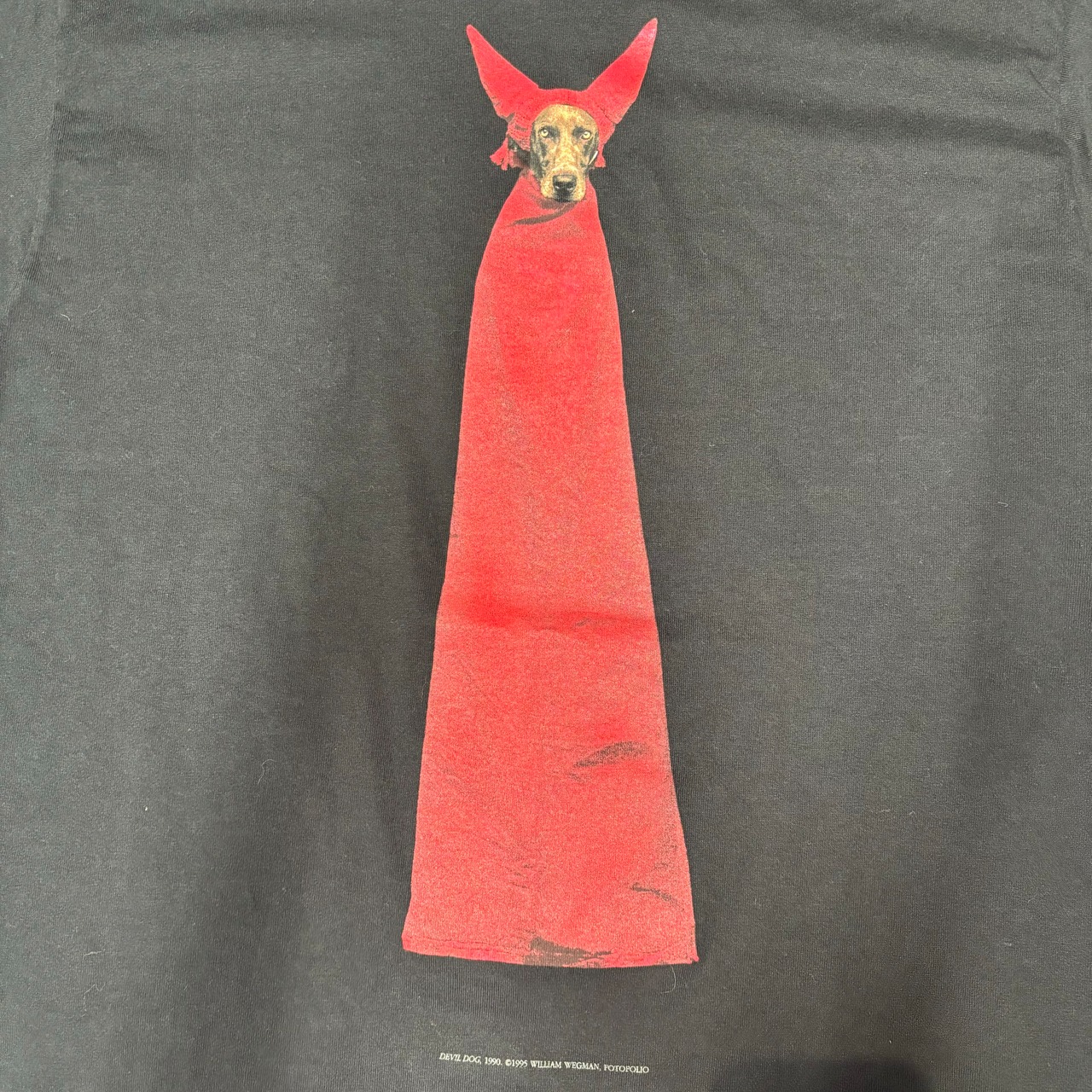 アメリカの写真家・アーティスト、ウィリアム・ウェグマンの作品「Devil Dog」がプリントされたTシャツ。