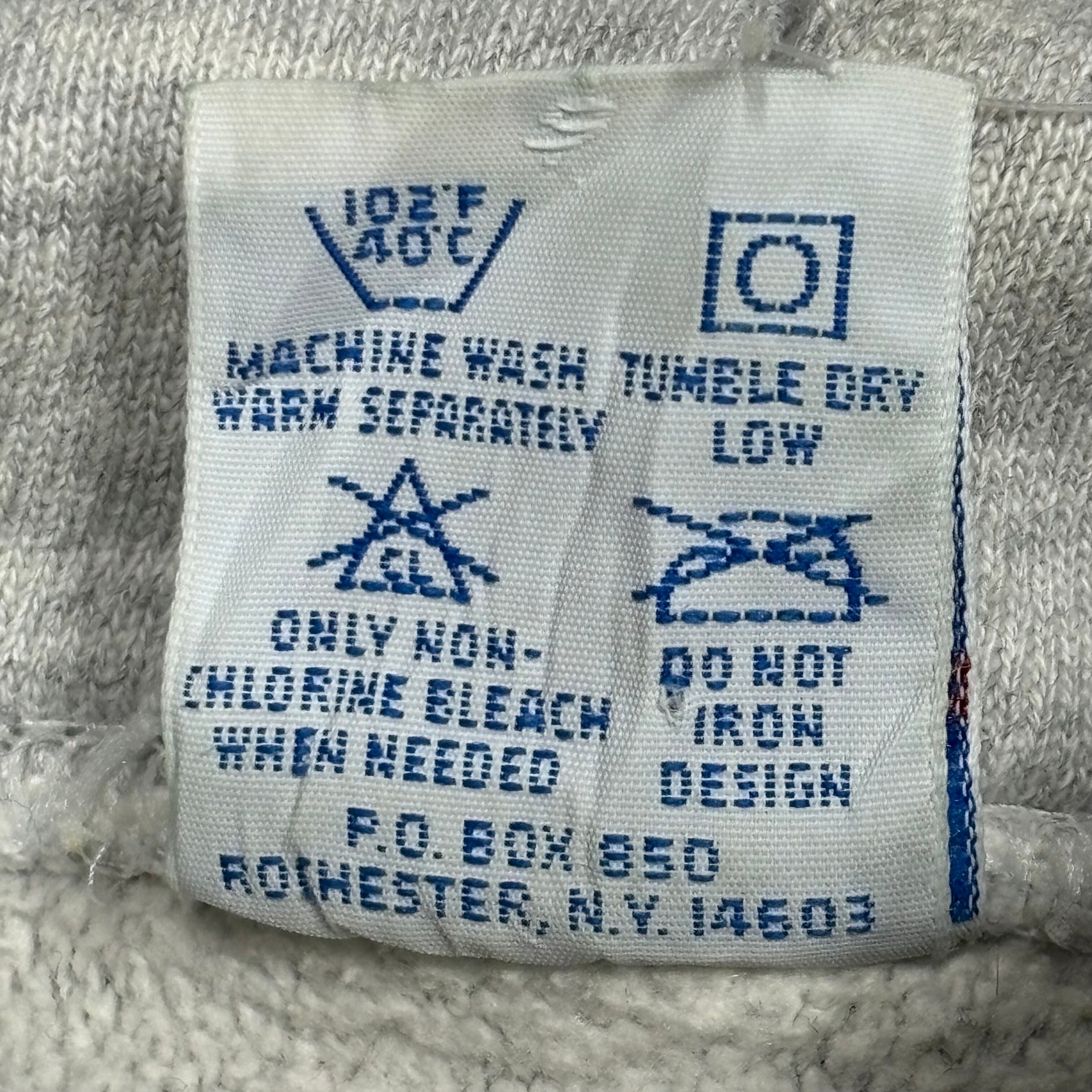 サイズはXLと大きめで、ゆったりとしたシルエットが特徴。首周りにも程よい余裕があり、ストレスなく着用できます。90年代特有の肉厚なボディとタフな作りは、長年着込んでもヘタレない、ダメージが絵になるのが魅力ですよね。