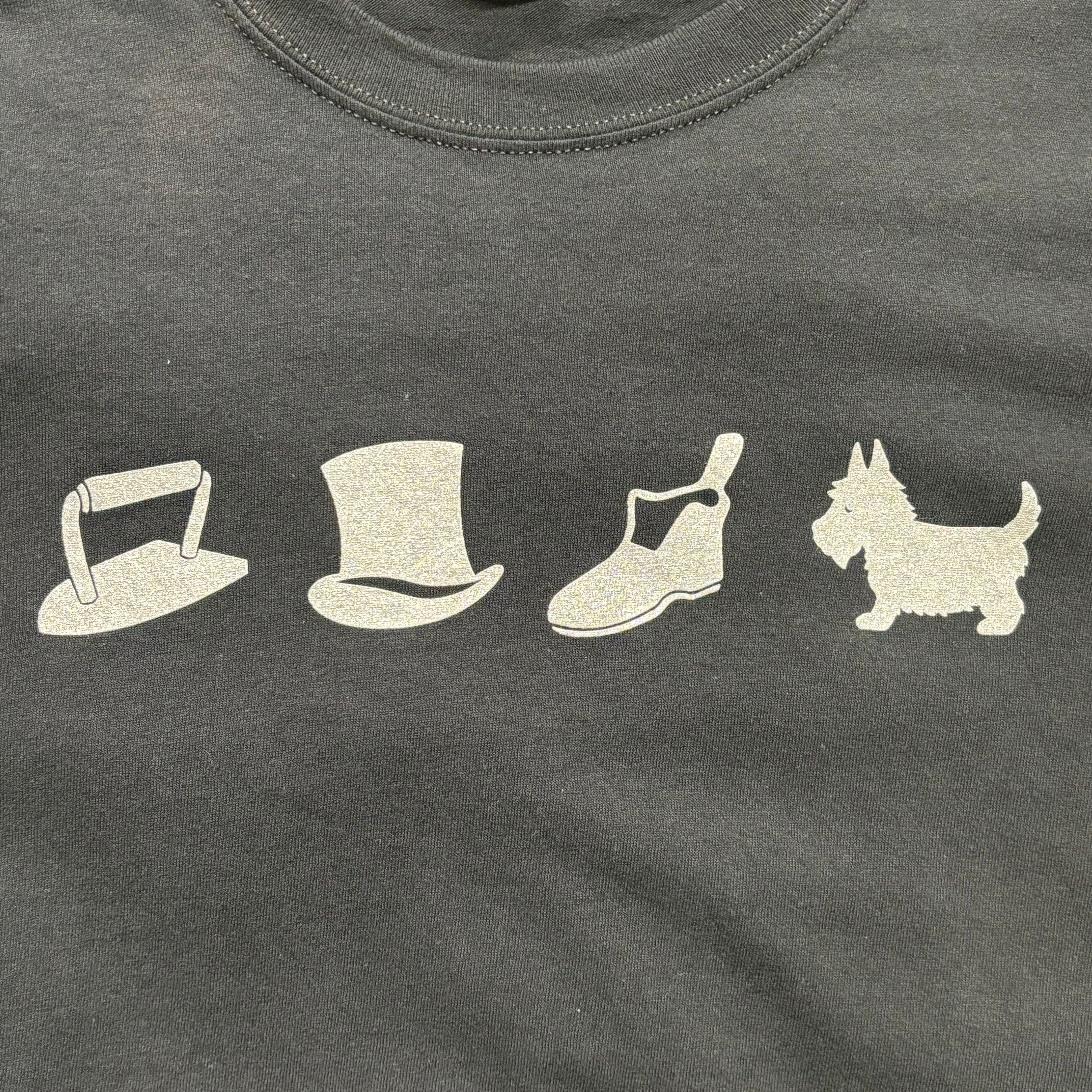フロントにはモノポリーの駒がデザインされており、遊び心のあるユニークな一着。