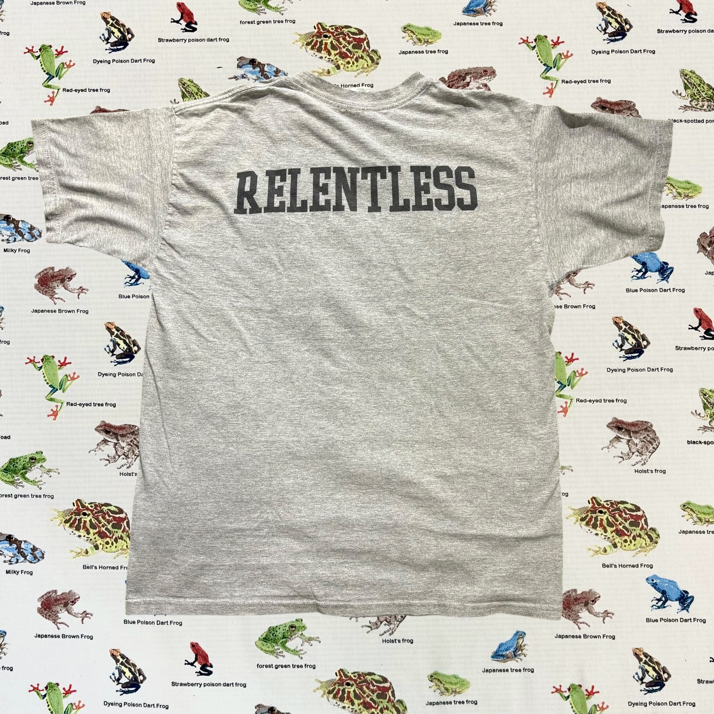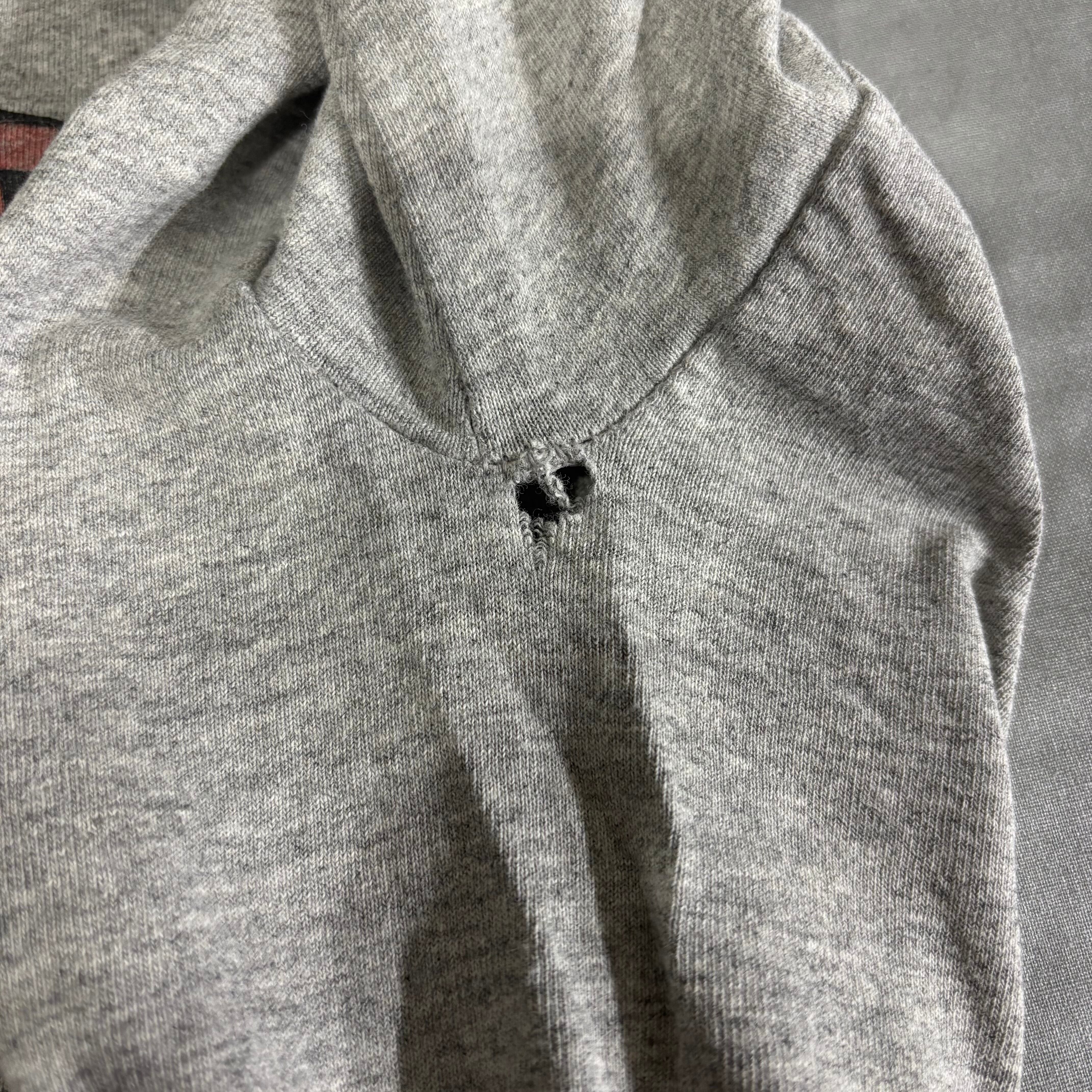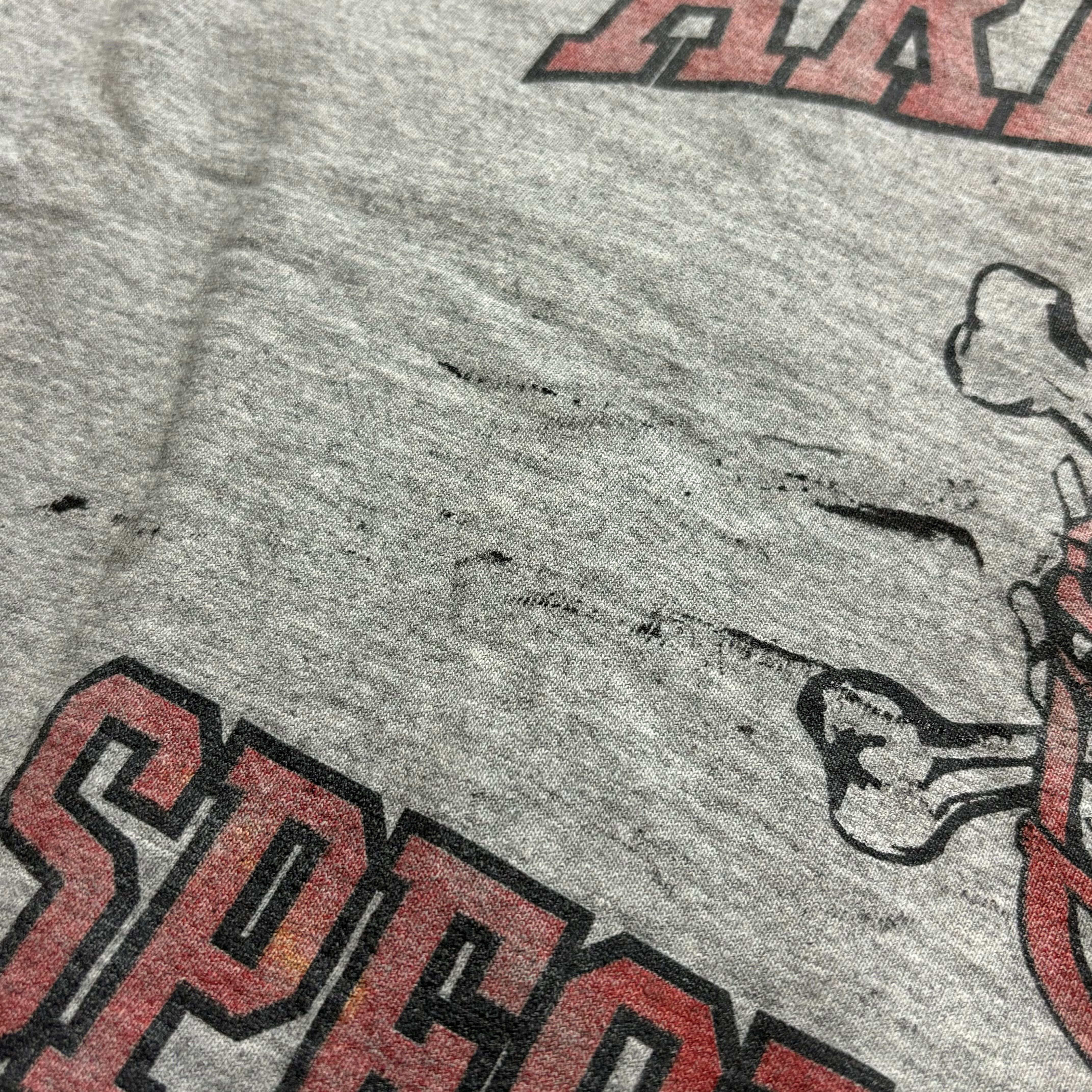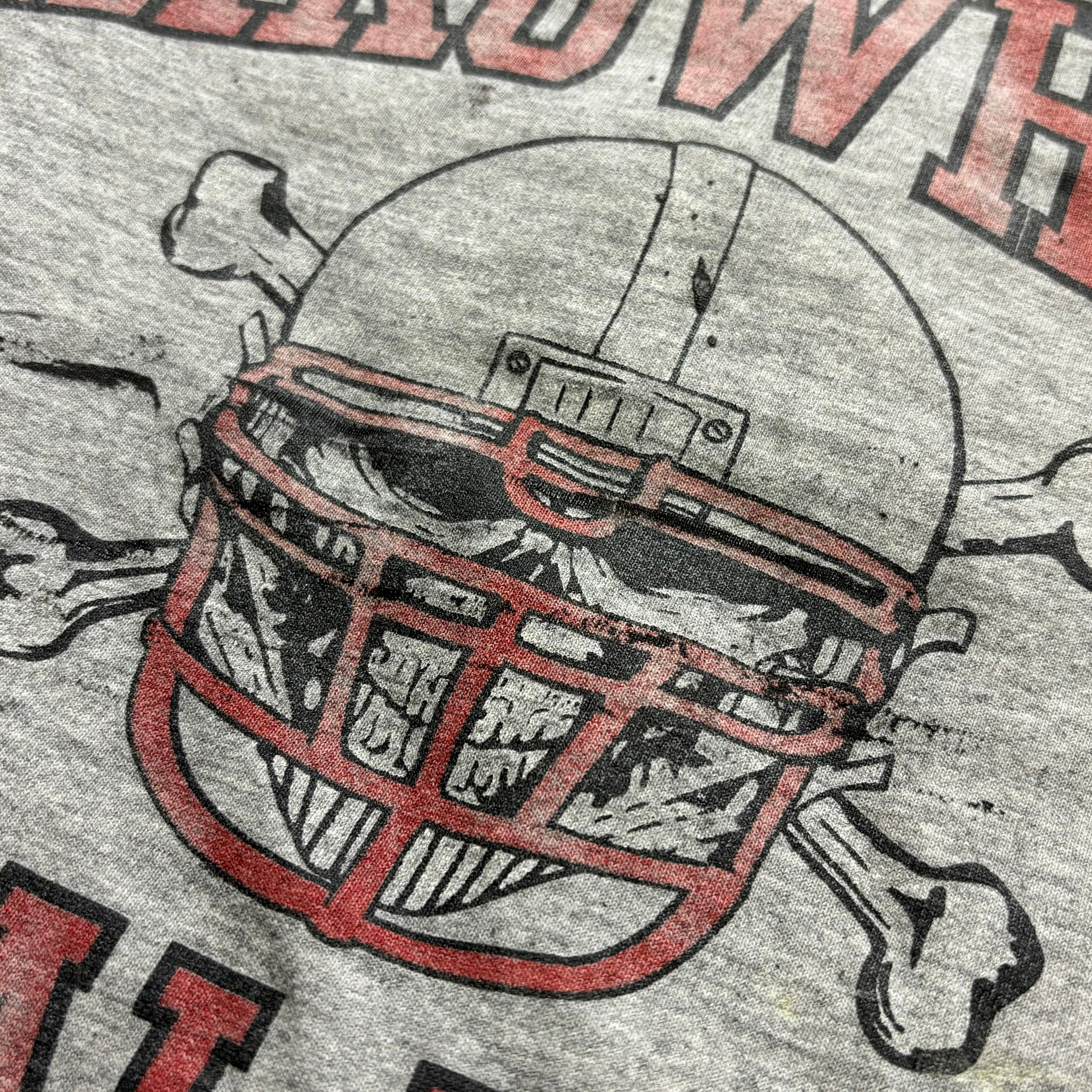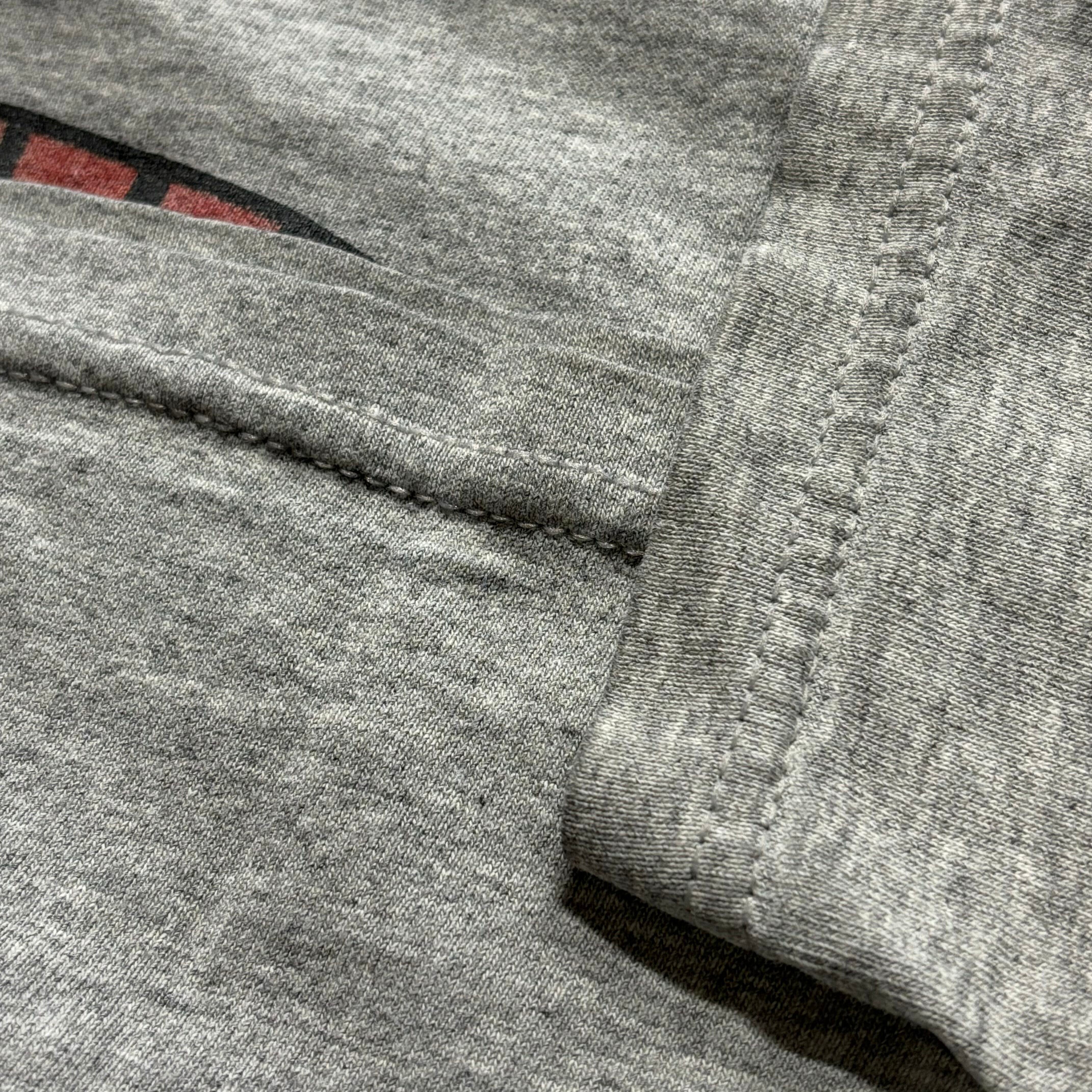 「ARROW HEAD SPECIAL TEAMS」のTシャツです。グレーボディにアメフトのヘルメットをかぶったドクロとチーム名がプリントされたシンプルながらも存在感のあるデザイン。背中には「RELENTLESS」の文字が入り、諦めずに突き進めといった感じの意味合いになるのでしょうか、力強いメッセージを感じさせる一着です。ペンキ汚れなども雰囲気のある仕上がり。