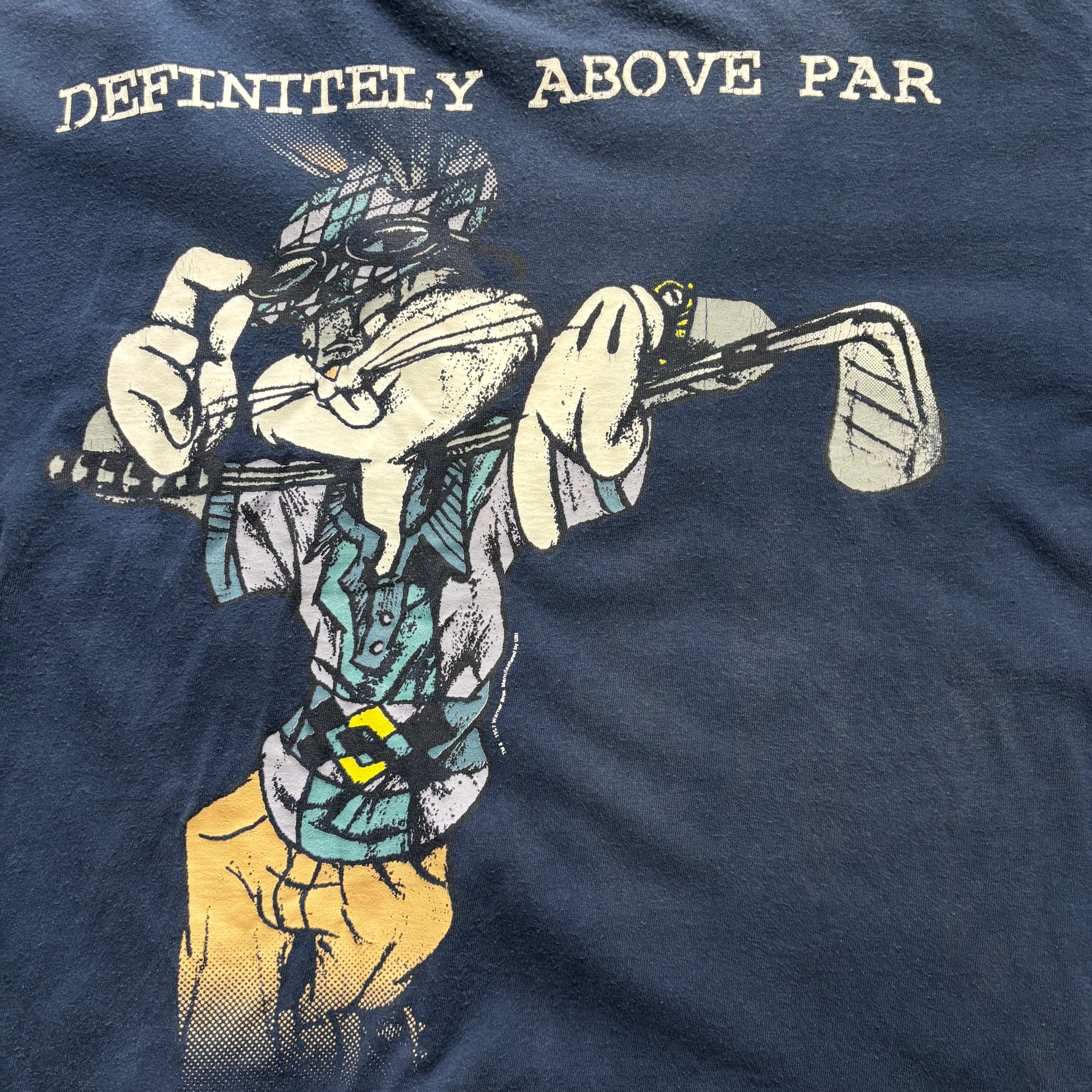 フロントには「DEFINITELY ABOVE PAR」の文字とともに、バックス・バニーがゴルフクラブを手に余裕の表情。