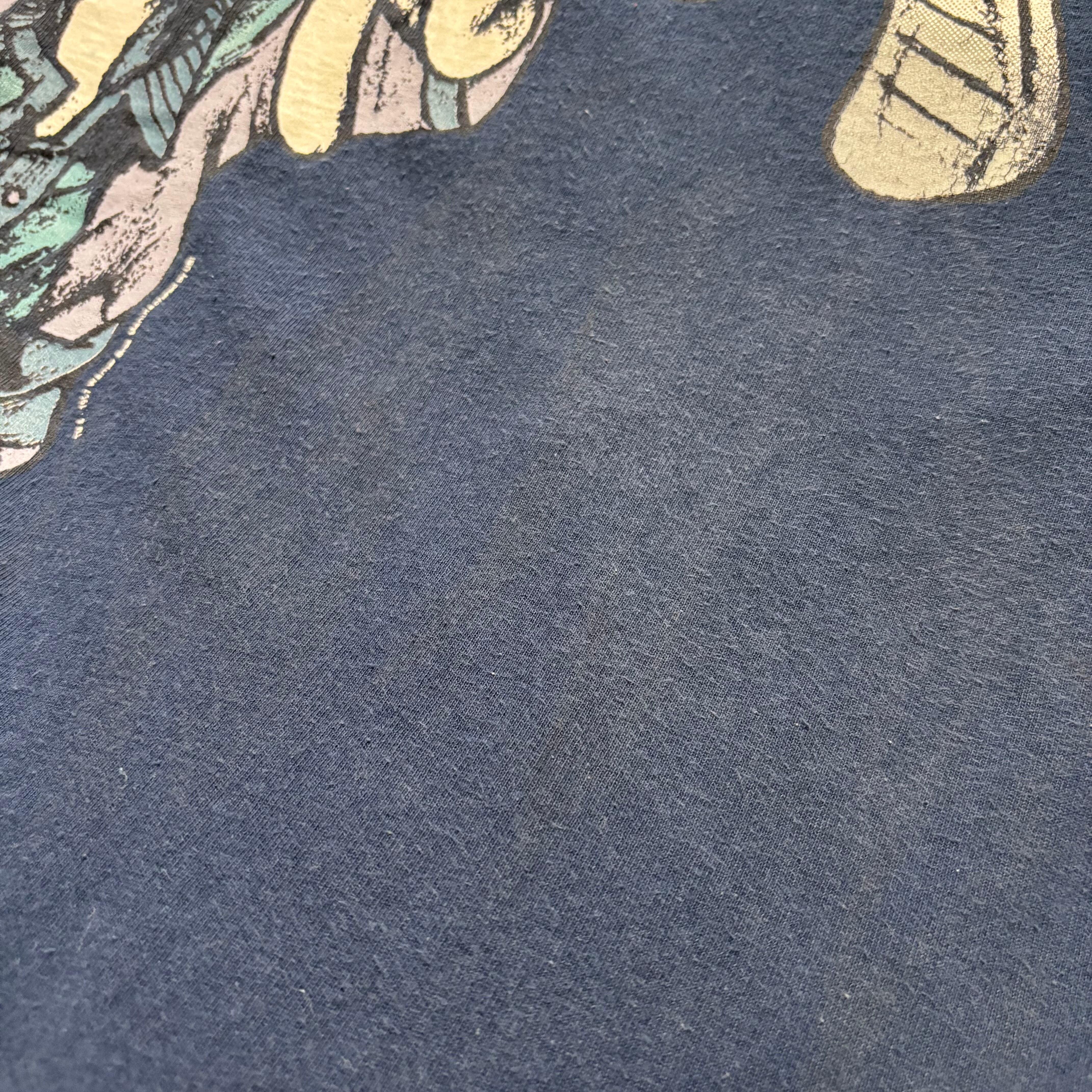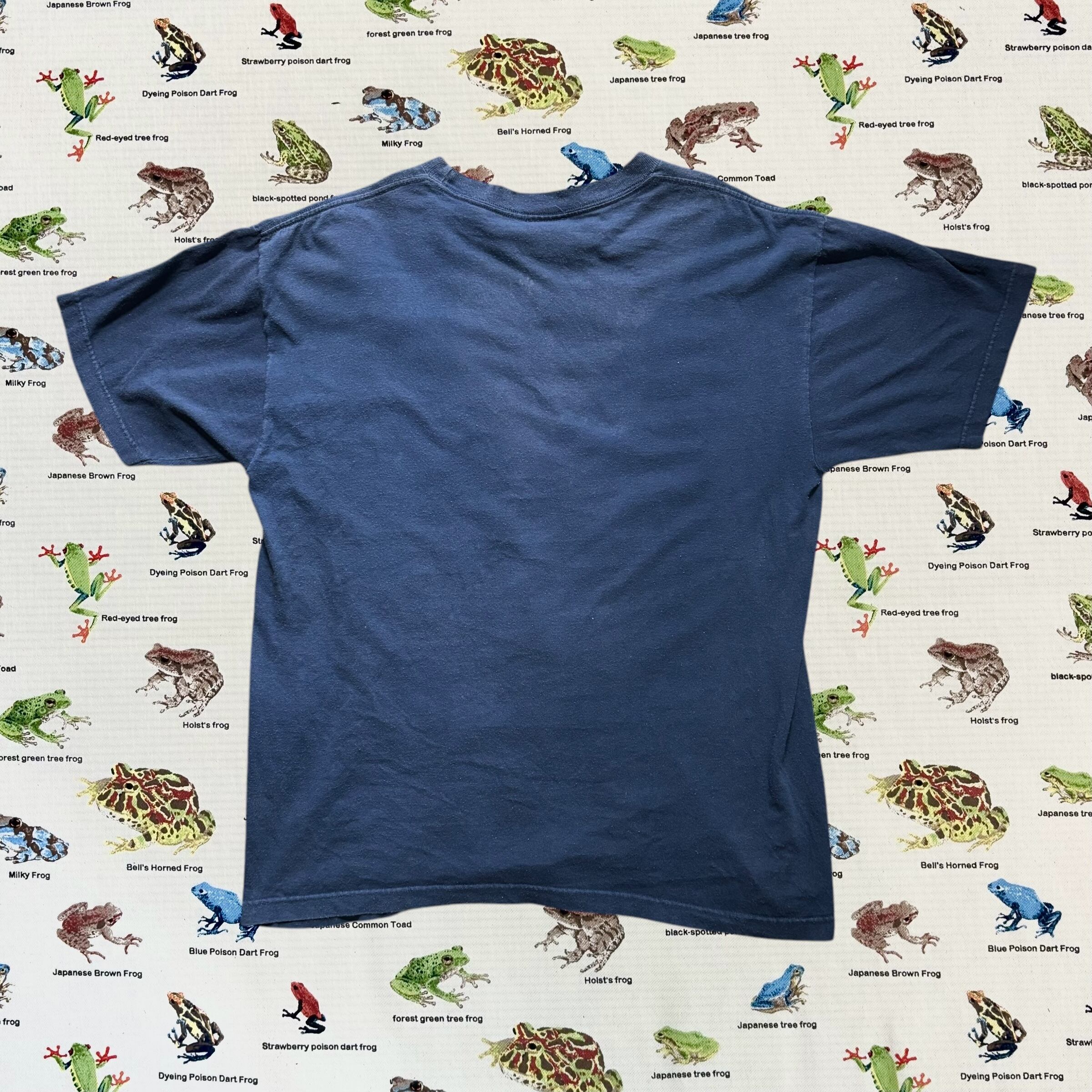 ネイビーカラーのボディに映えるグラフィックが特徴で、クラシックなアメリカンカジュアルの雰囲気を楽しめるTシャツです。