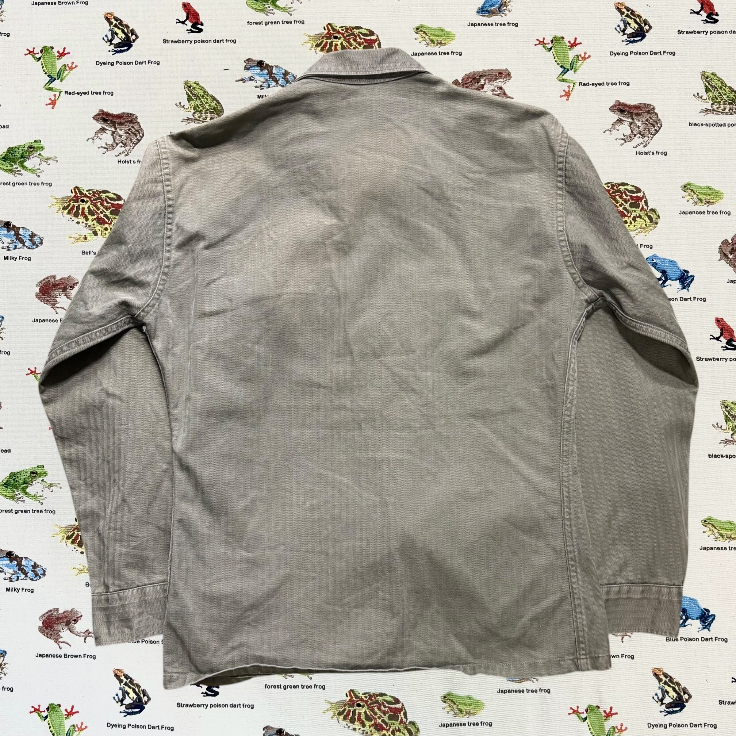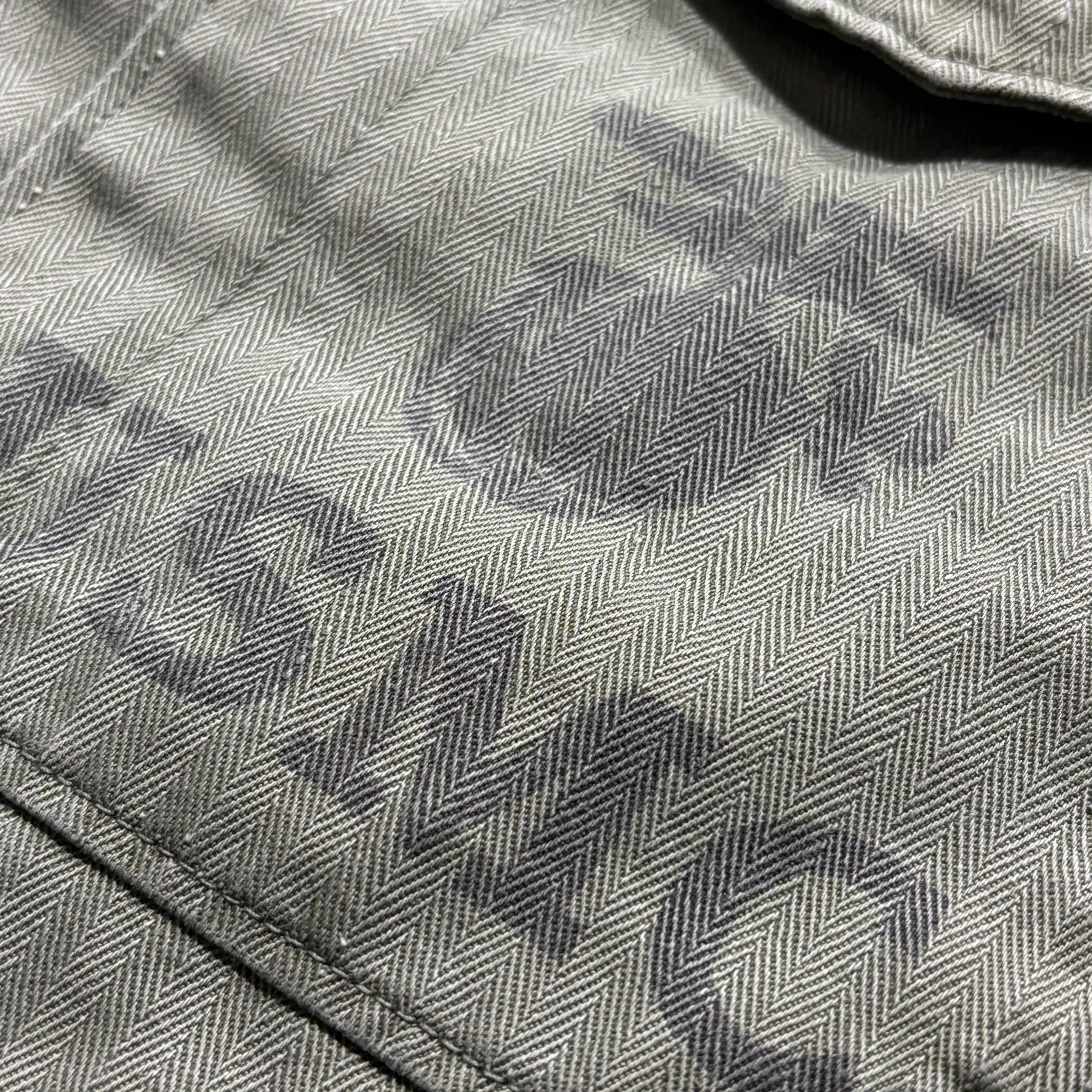 1950年代から60年代前半の短期間採用されたアメリカ海兵隊(USMC)のユーティリティシャツ「P-53」。貴重なヘリンボーン生地のタイプです。