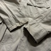 フロントはボタン留めのシンプルなデザイン で、無駄のない洗練されたシルエットが特徴。ライトウェイトな作りなので、春夏の羽織りとして最適で、アメカジやミリタリースタイルはもちろん、シンプルなカジュアルコーデにも取り入れやすい一着です。