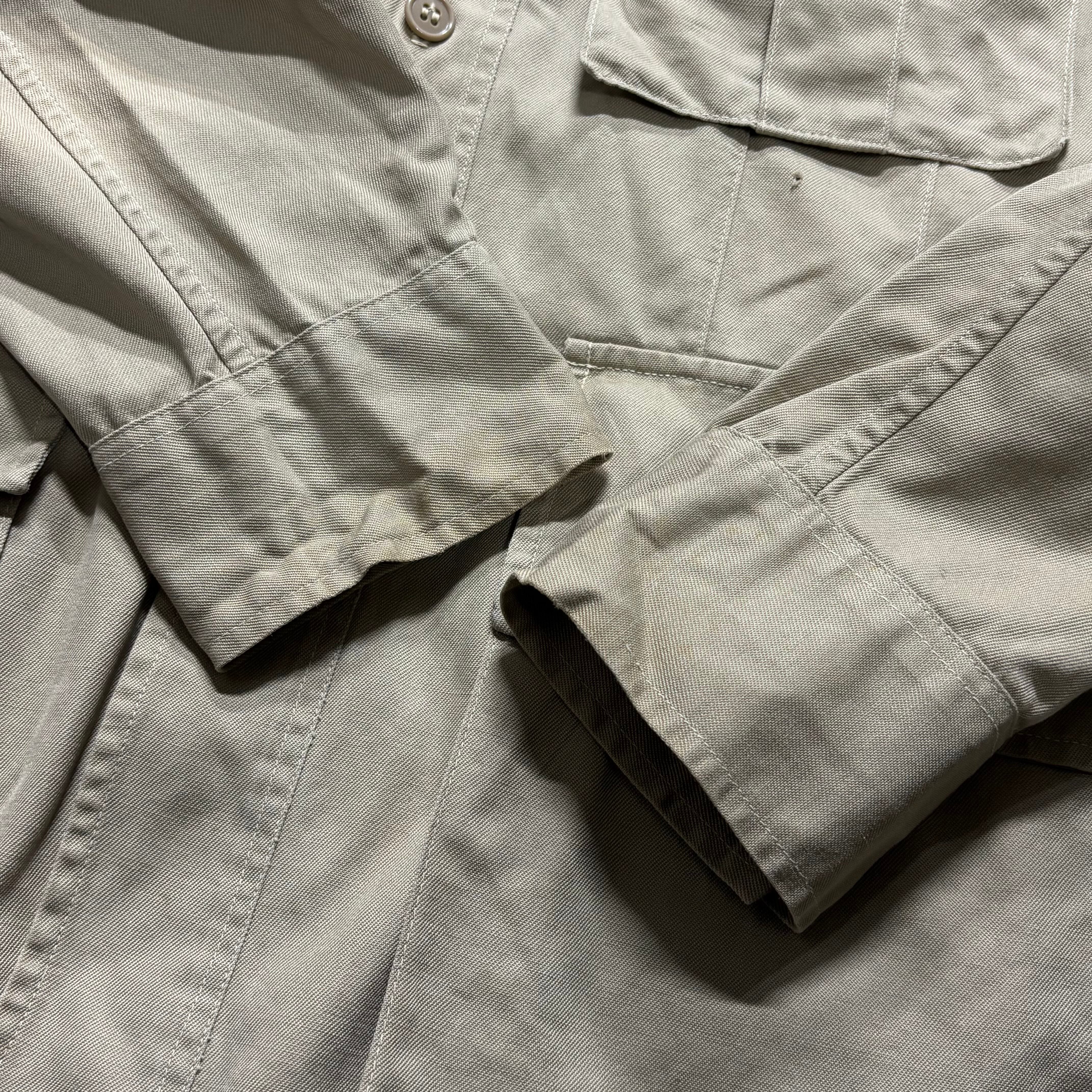 軽量で通気性の良い コットン素材 を使用し、ヴィンテージミリタリーらしい無骨さと上品さを兼ね備えています。