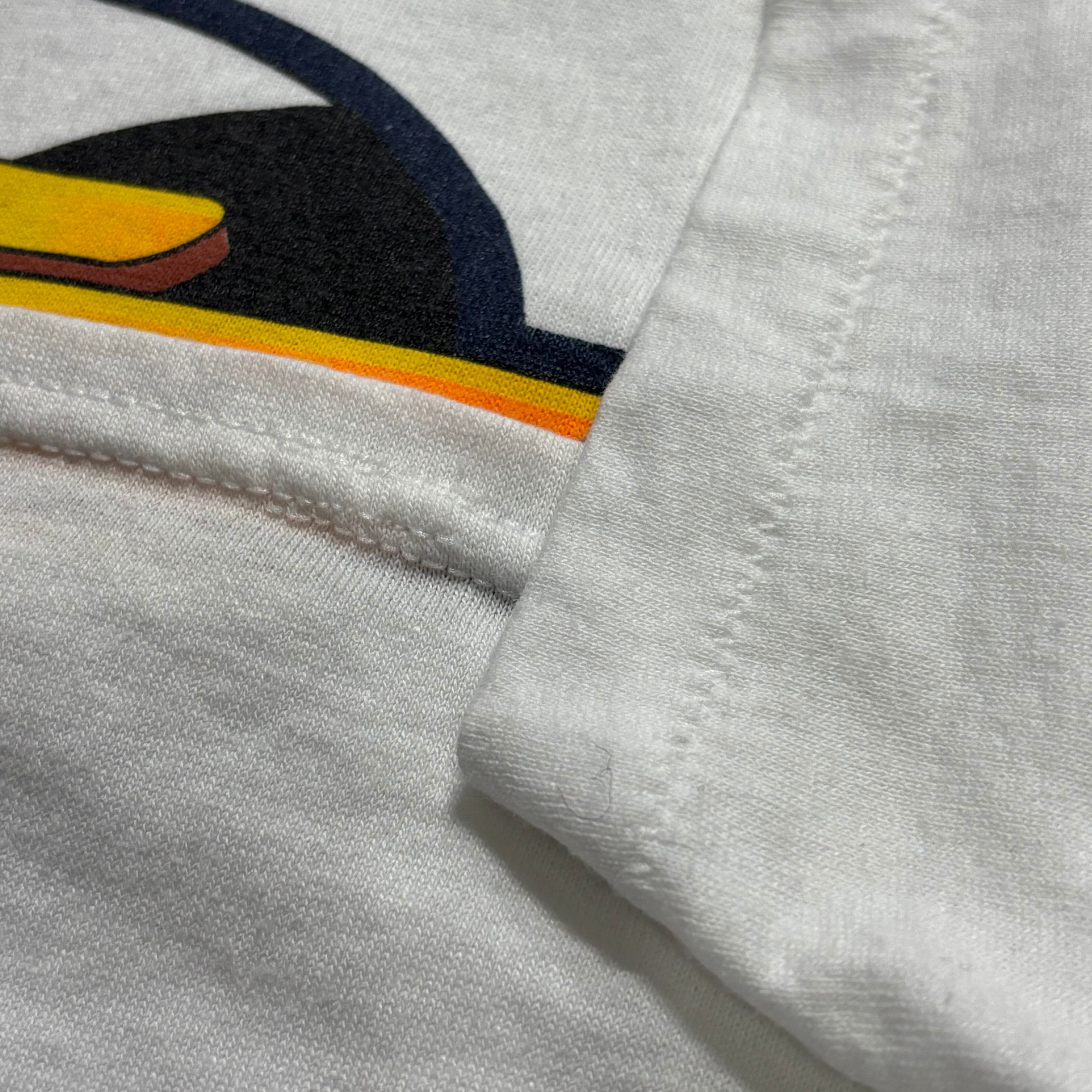 ヘインズ製で、ポリエステル50%コットン50%の素材のメキシコ製、薄手の生地感です。