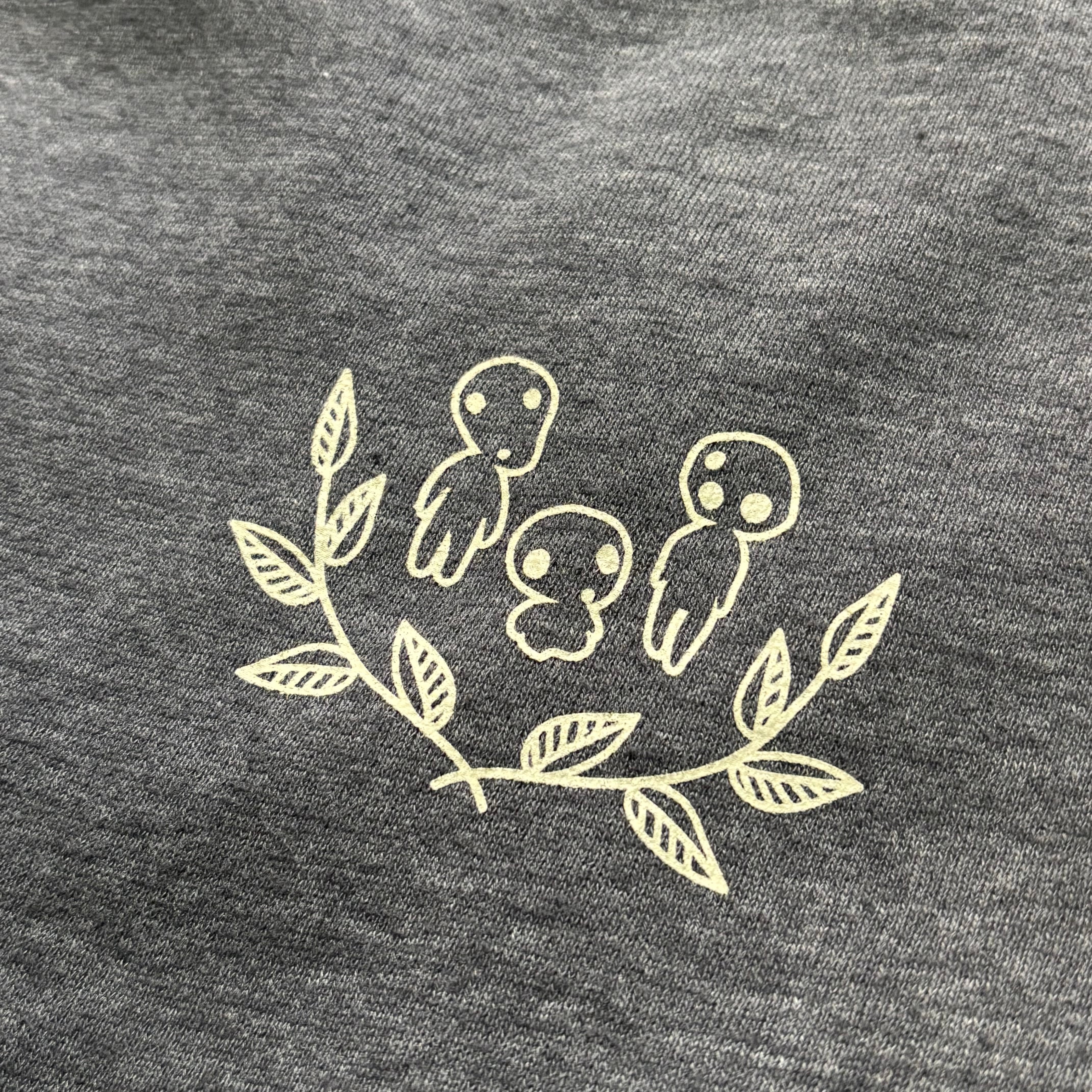 ジブリの名作『もののけ姫』からインスパイアを受けた、アメリカブランドによる公式ライセンス商品です。胸元には可愛らしいコダマのプリント、両袖にはモロのデザインが施されています。使い勝手の良いダークグレーの色合いは、シンプルでどんなコーディネートにも合わせやすい一着。素材はコットン55%、ポリエステル45%の柔らかな生地感で、肌触りも抜群です。ジブリファンはもちろん、ユニークなデザインを楽しみたい方にもぴったりなアイテムです。