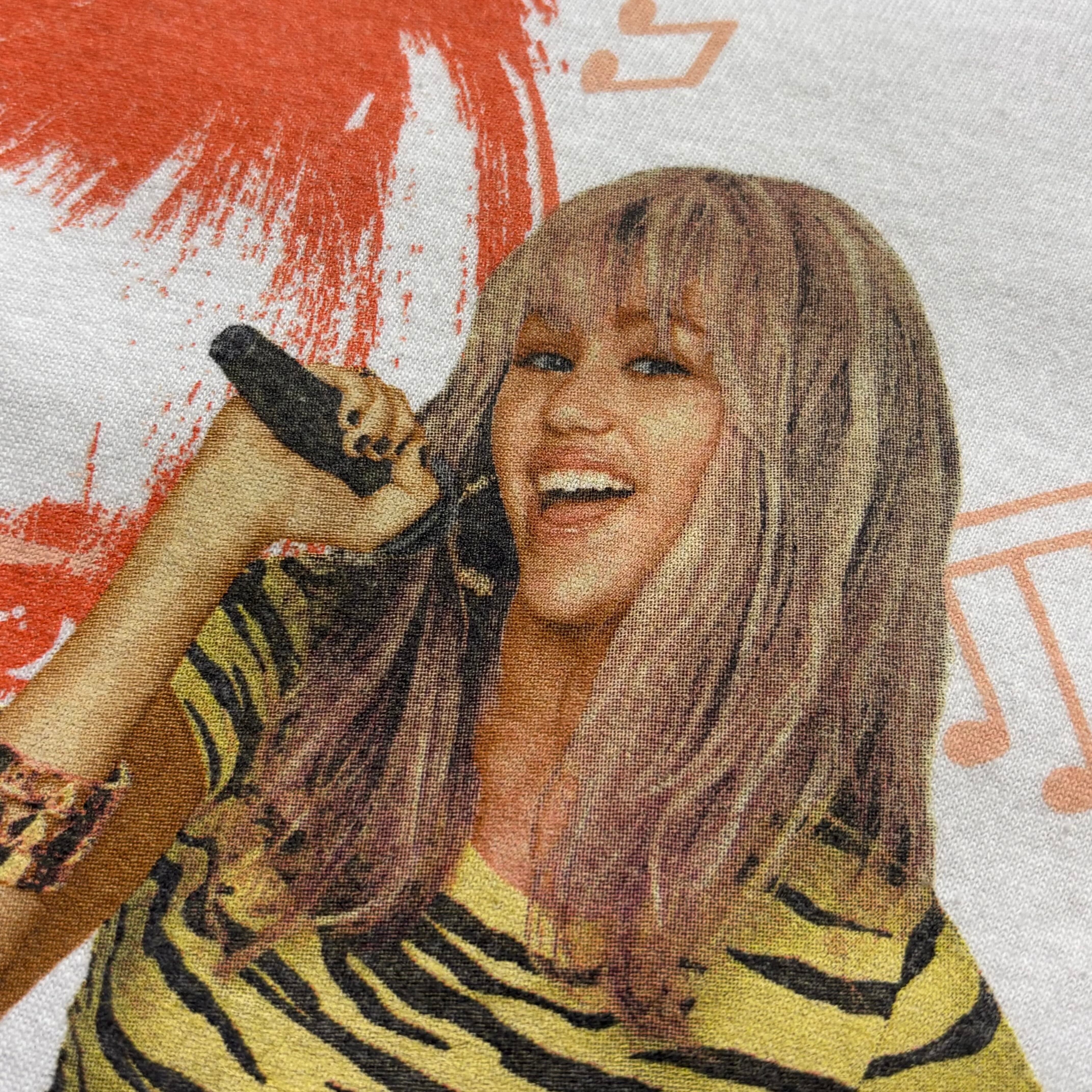 2000年代のティーンアイコン「ハンナ・モンタナ」が大胆にプリントされた、存在感抜群のTシャツ。