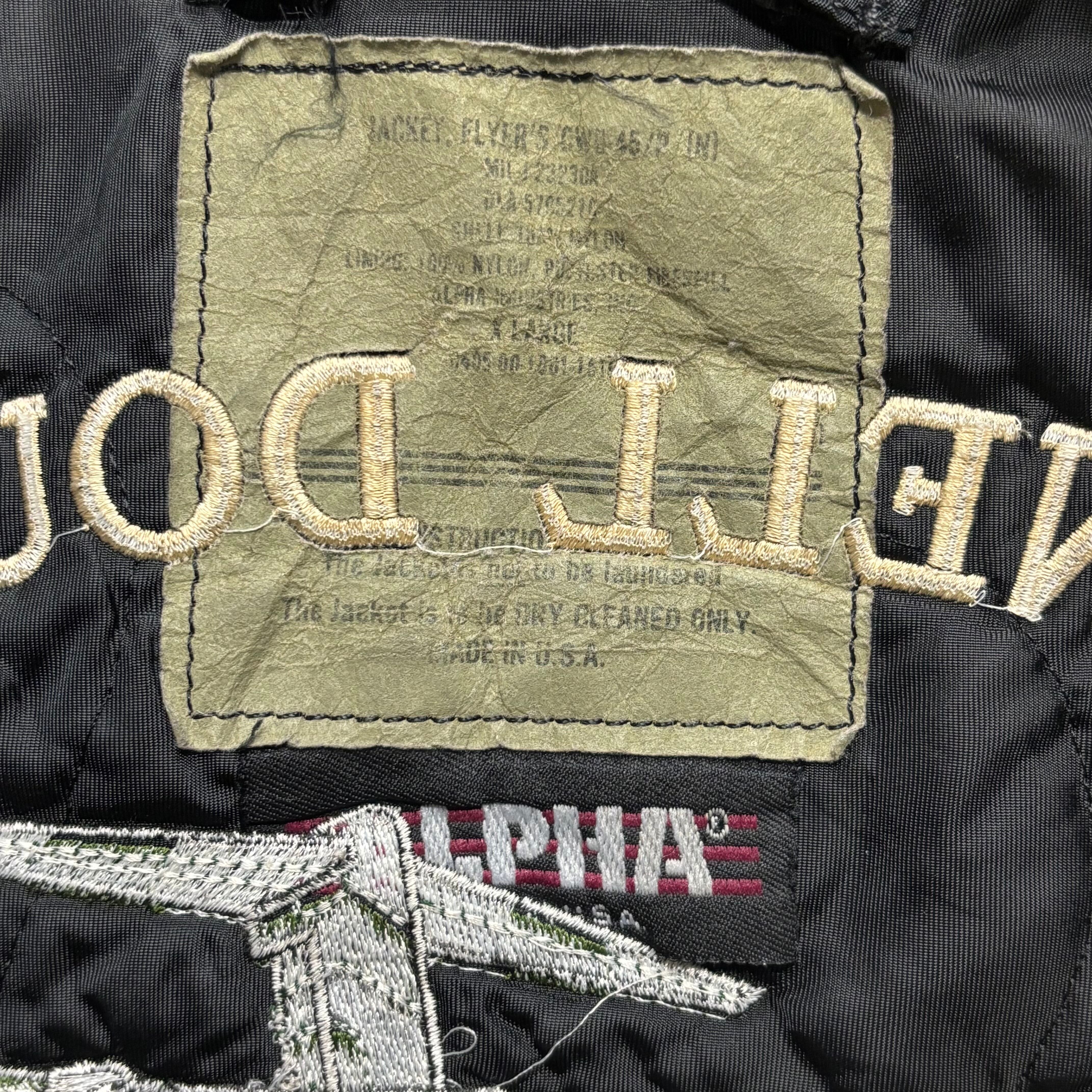 アメリカ空軍(U.S. AIR FORCE)で運用されている輸送機「C-17 GLOBEMASTER III」に関連する、カスタム仕様のALPHA INDUSTRIES製フライトジャケット、CWU-45/Pです。