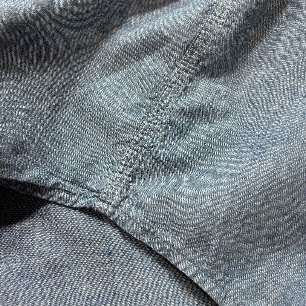 王道のダブルポケット仕様に、100%コットンのシャンブレー生地。経年変化で味わいを増した絶妙なフェード感が魅力。