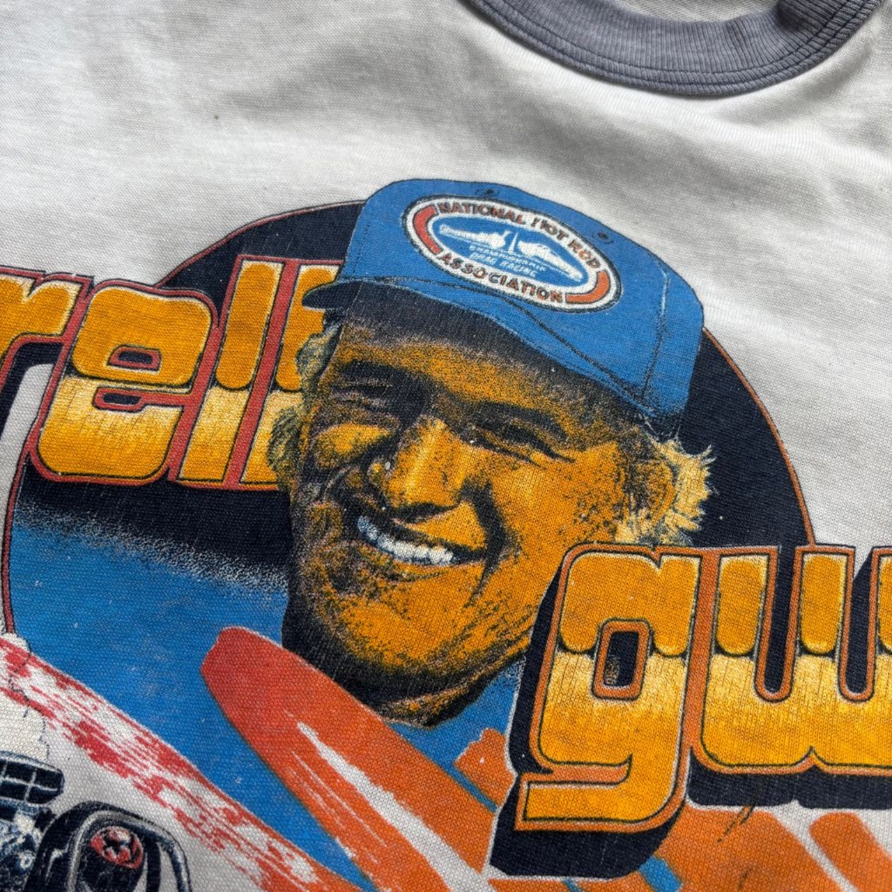 80年代アメリカのドラッグレース界を代表する名選手、Darrell Gwynn(ダレル・グウィン)をフィーチャーしたヴィンテージTシャツ。