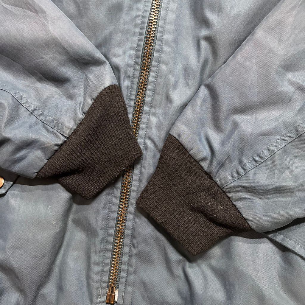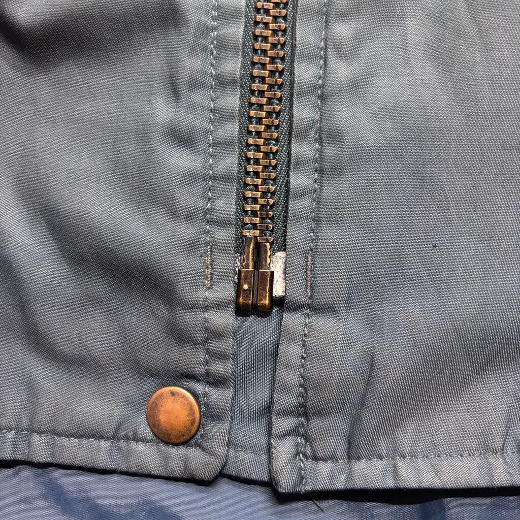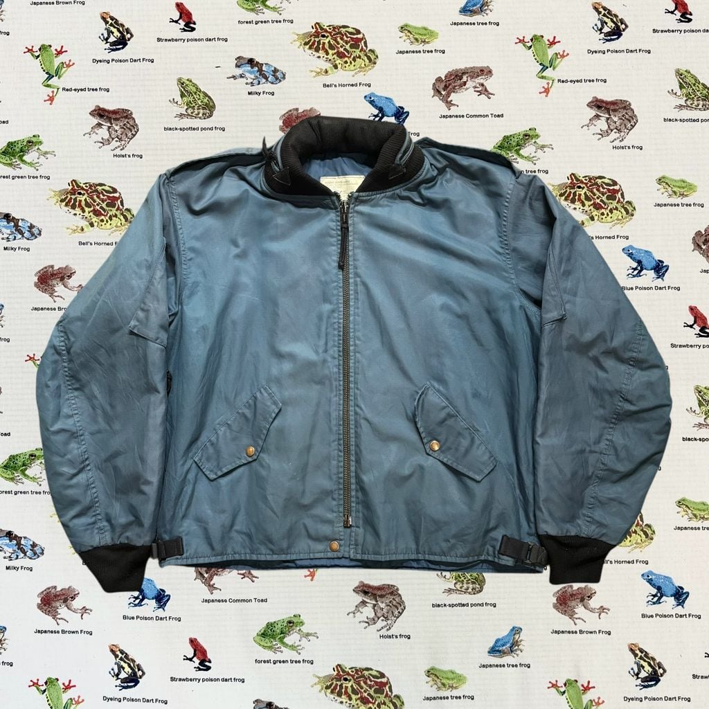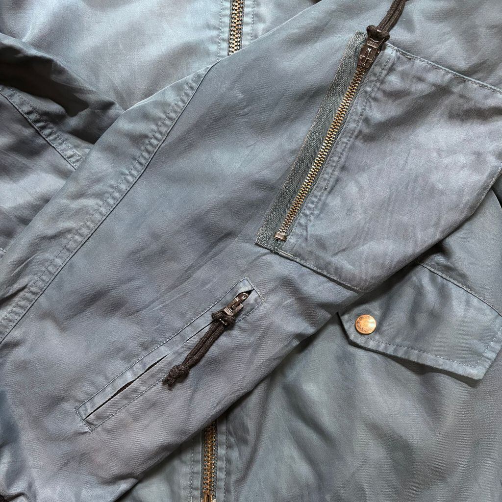 やや光沢を帯びたブルーグレーのナイロンコットンシェル、米軍のものとはまた違った独特の色味に加えシルエットも通常のジャケットのようで、面白いですね。