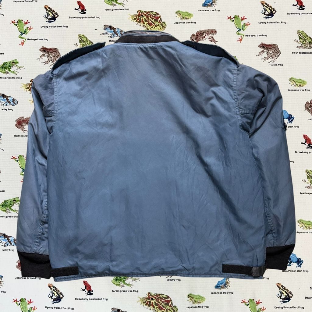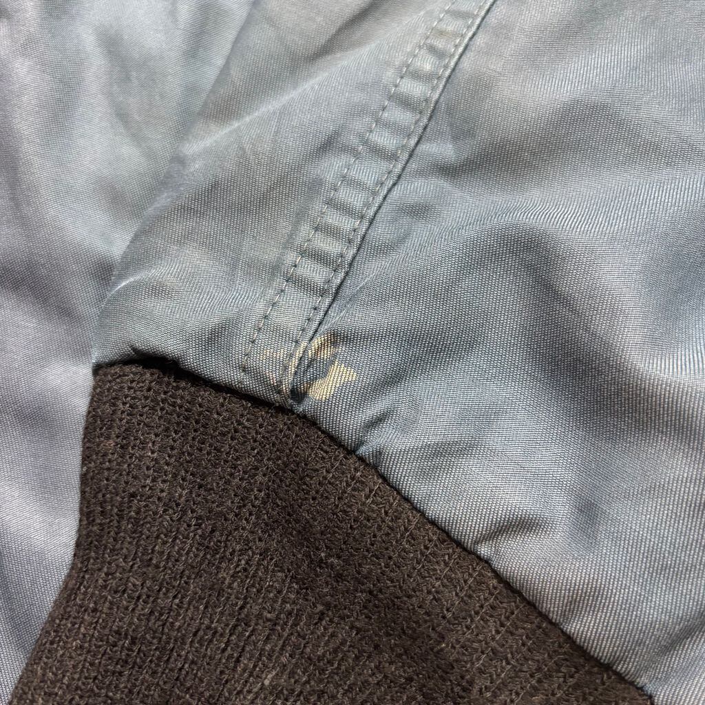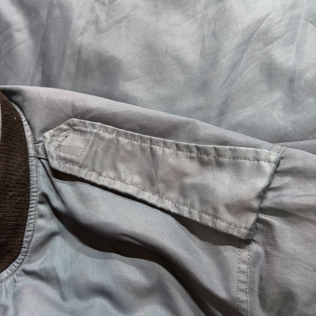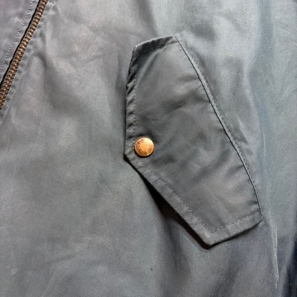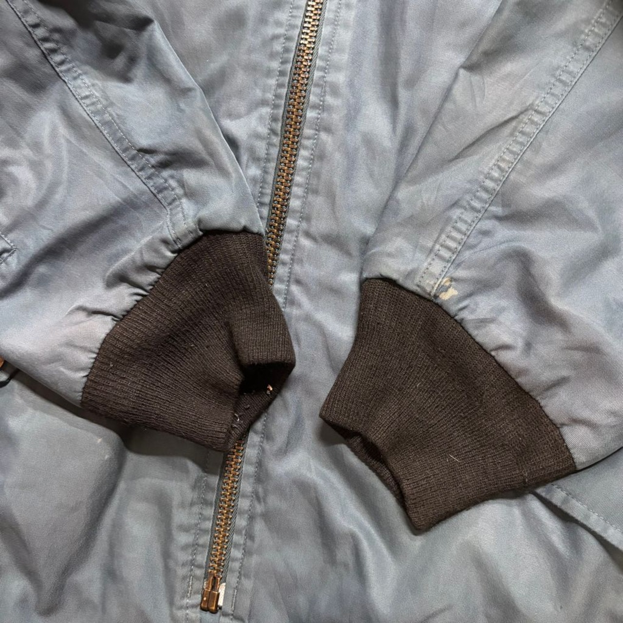 やや光沢を帯びたブルーグレーのナイロンコットンシェル、米軍のものとはまた違った独特の色味に加えシルエットも通常のジャケットのようで、面白いですね。