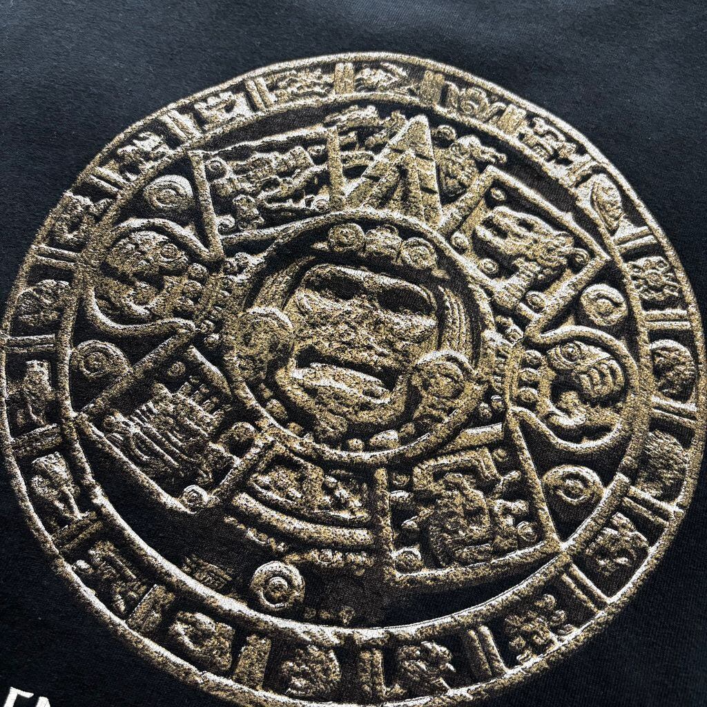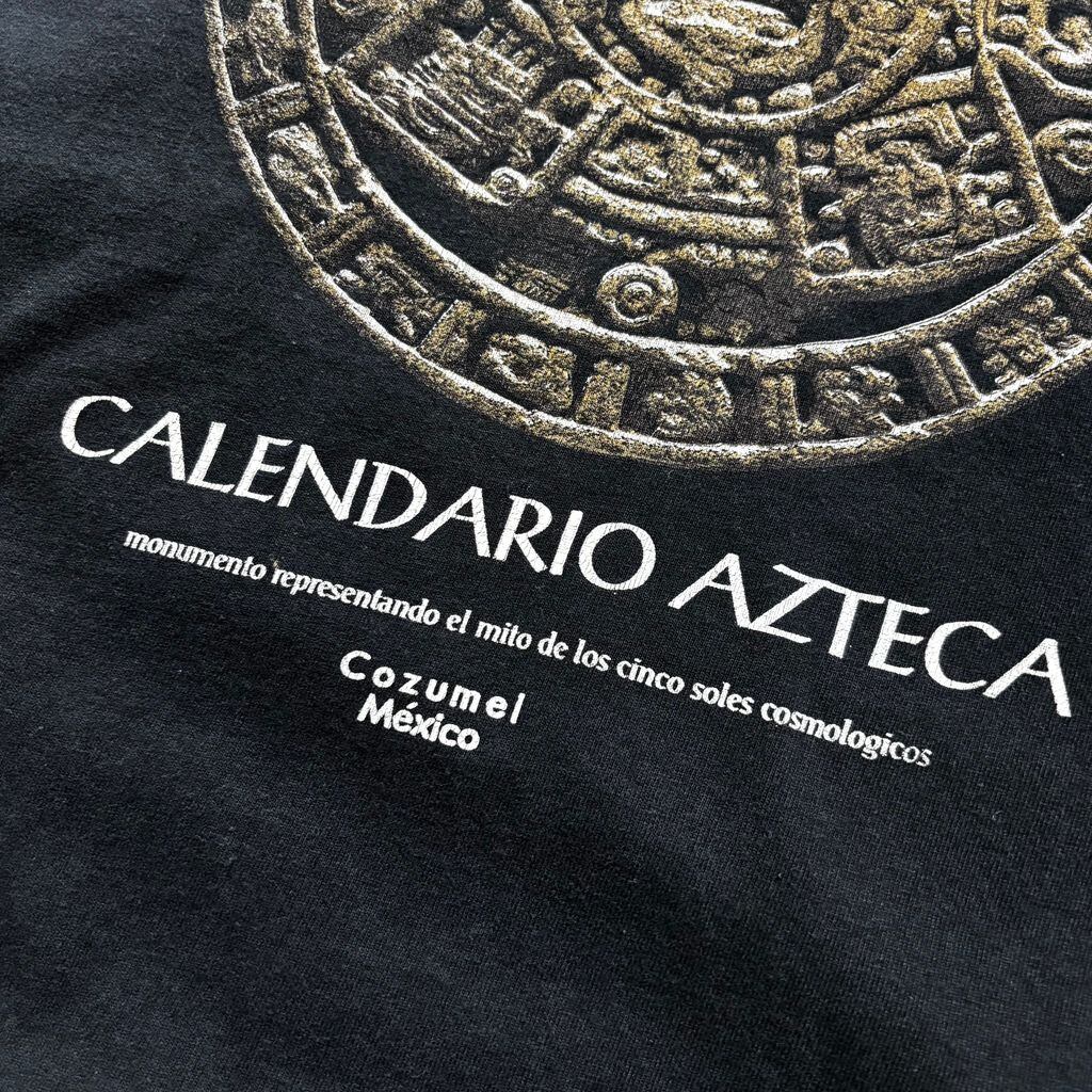 アステカ文明の象徴、“太陽の石(CALENDARIO AZTECA)”が大きくプリントされたメキシコ製Tシャツ。