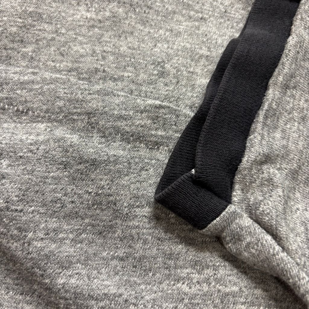 霜降りグレーのボディに、ブラックのリンガー&胸元プリント。