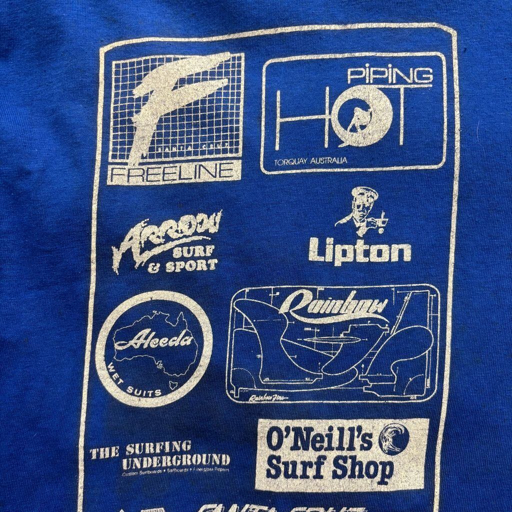 バックにはBudweiser、フロントにはO’NeillやSanta Cruzなど、サーフ好き、古着好きにはたまらないロゴがずらり。