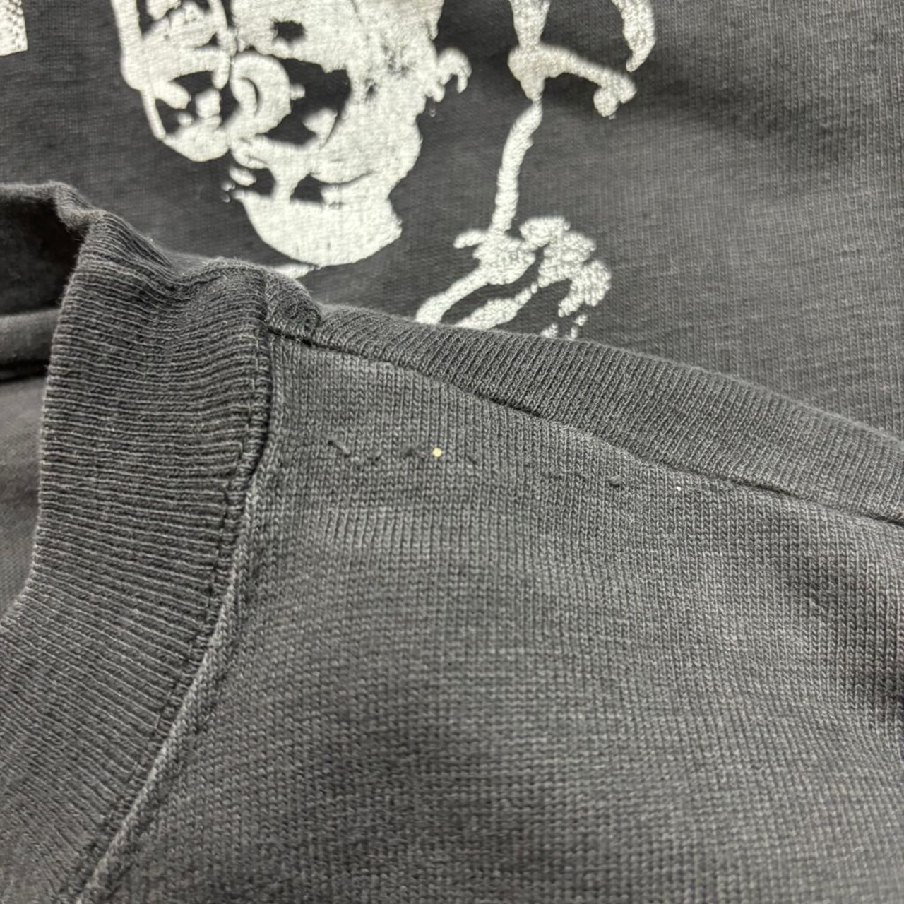 袖、フロントのプリント部分、ボディに複数箇所、ダメージがございます。