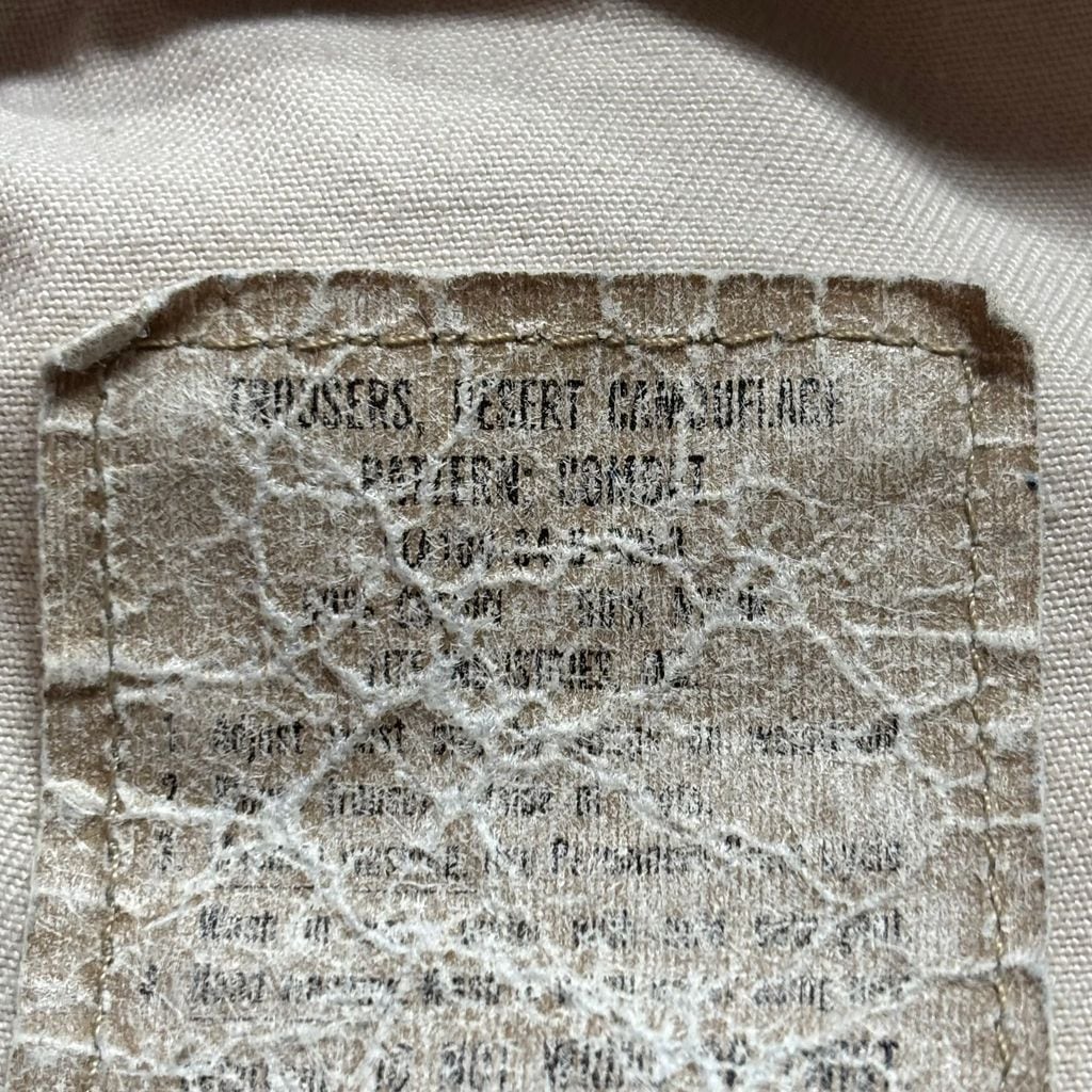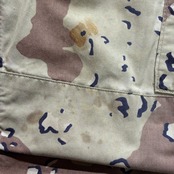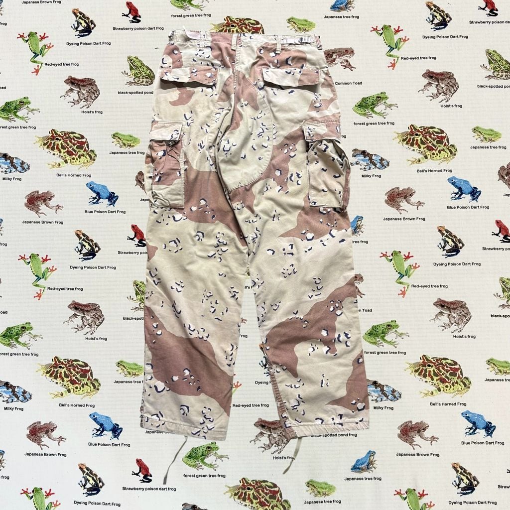 アメリカ軍が砂漠地帯で使用していた、通称「チョコチップカモ」、6Cデザート迷彩のカーゴパンツ。