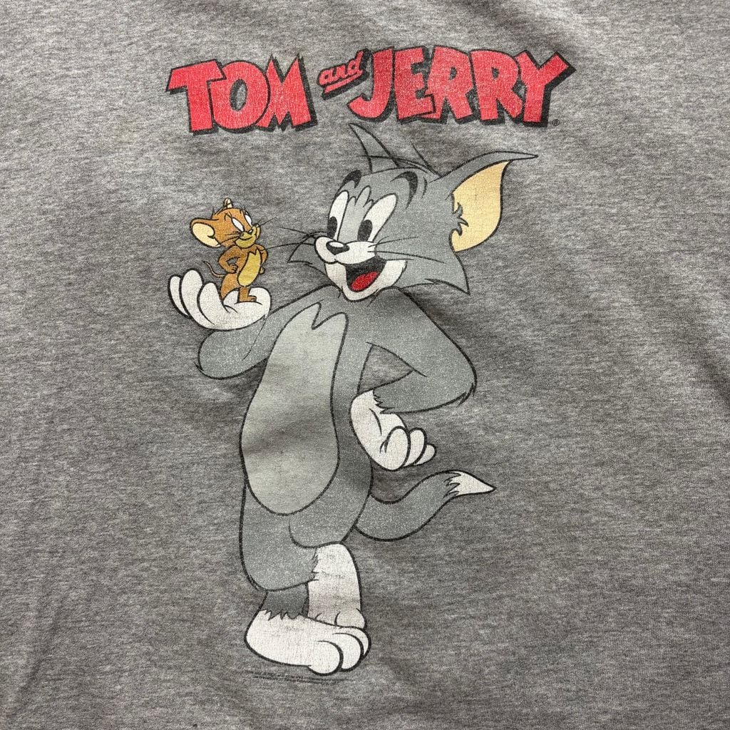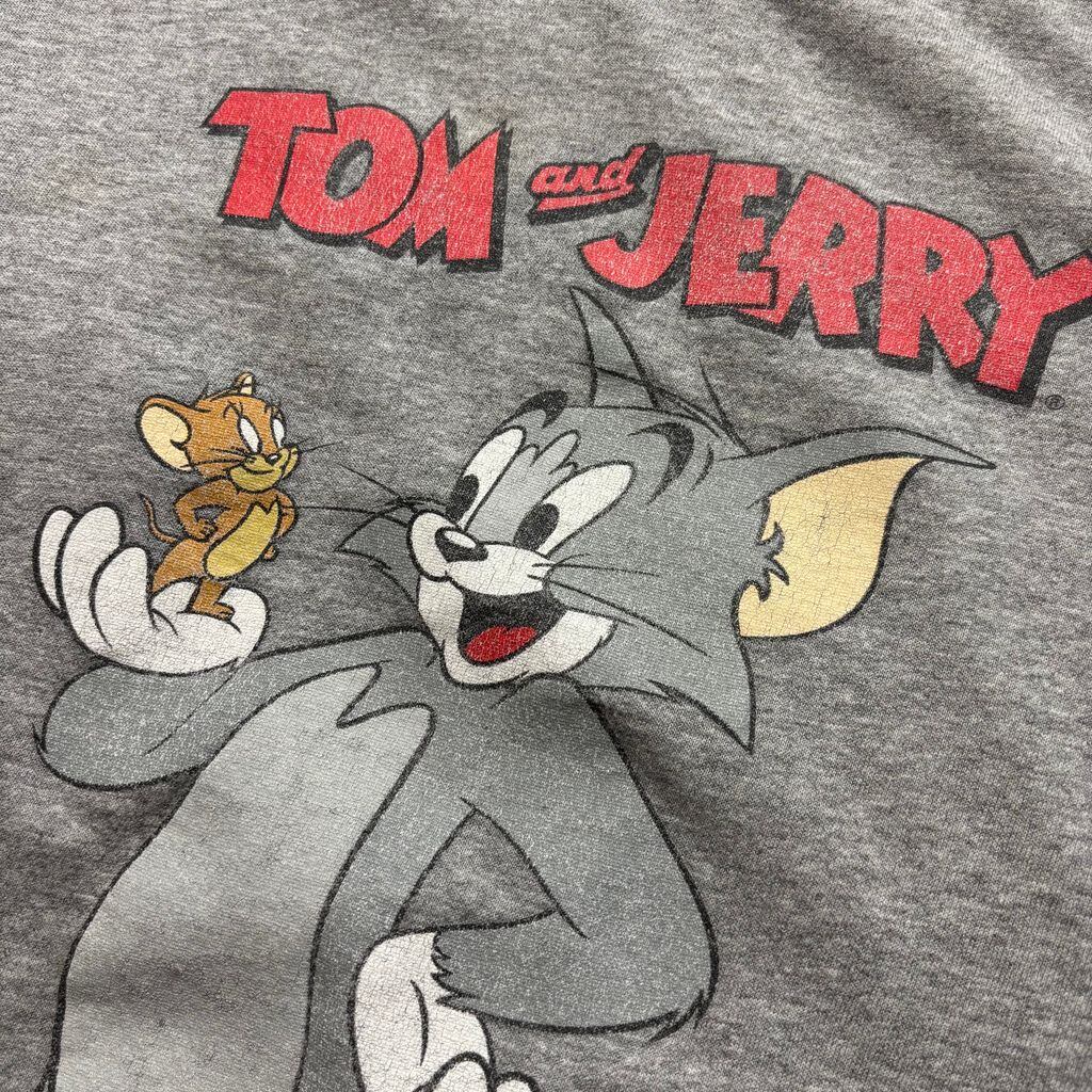 ゆるっとした表情のトムに、ちょこんと乗っかるジェリー。プリントの擦れ具合も相まって、ヴィンテージ感のあるTシャツです。