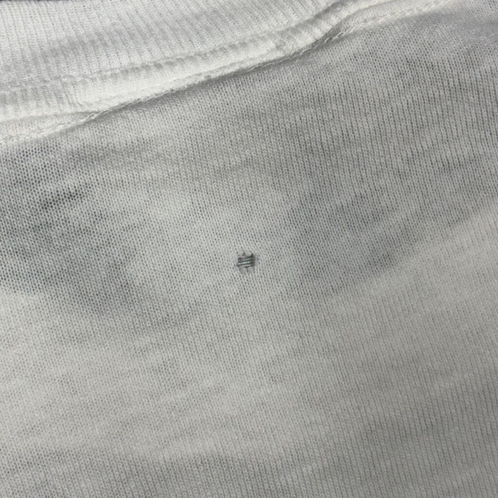 穴あき箇所がフロントに2箇所、裏の襟下に1箇所