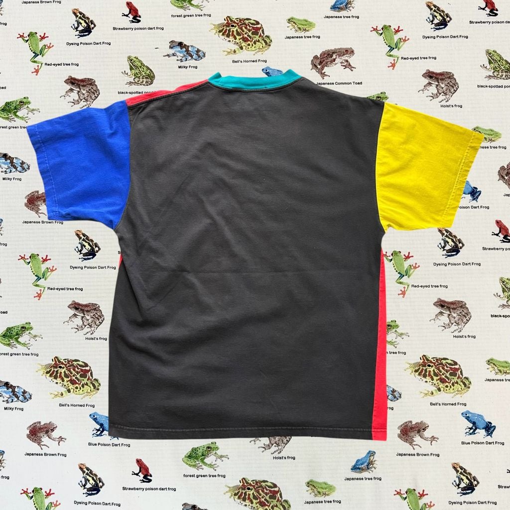 90年代の空気感をそのまま閉じ込めたようなマルチカラーパネルTシャツです。