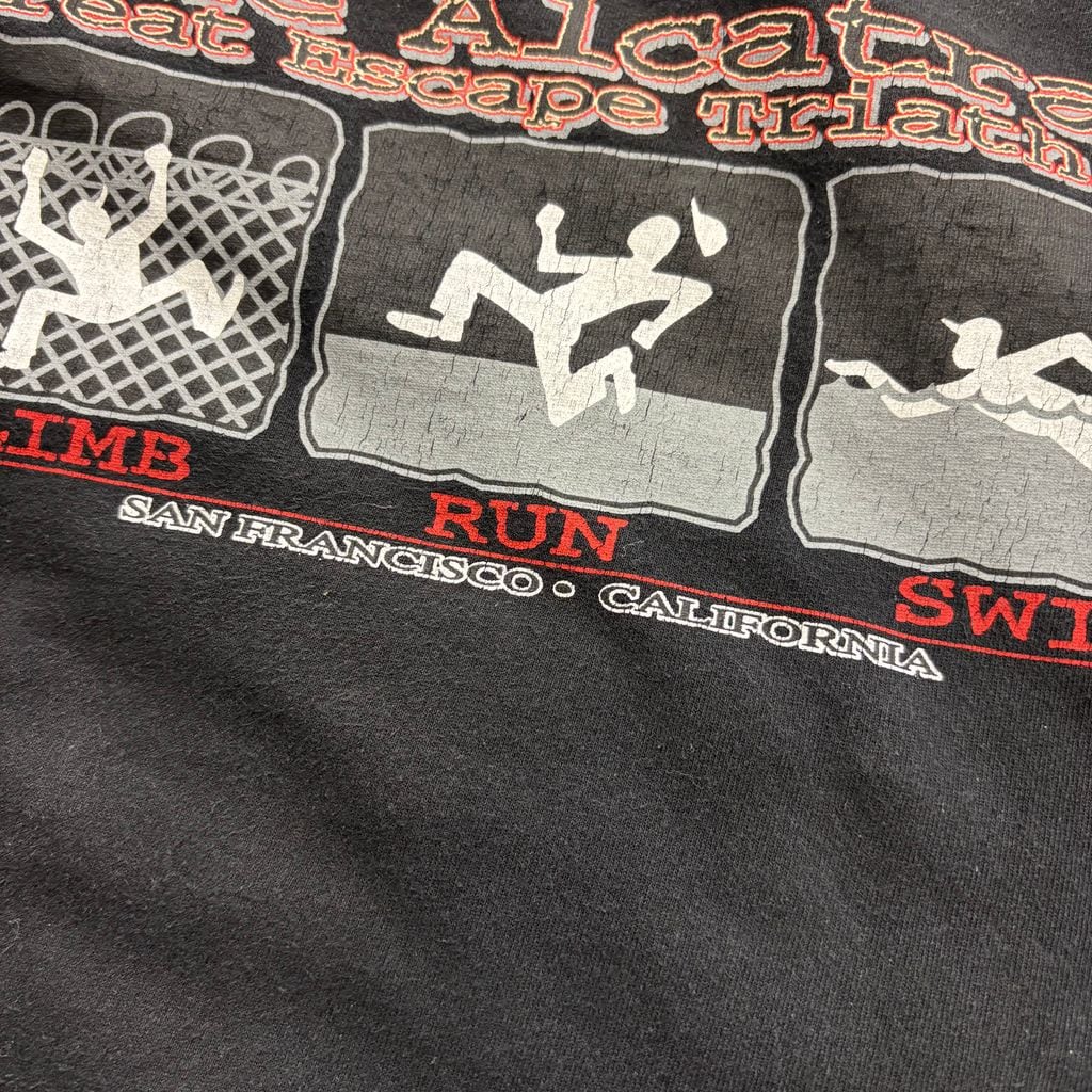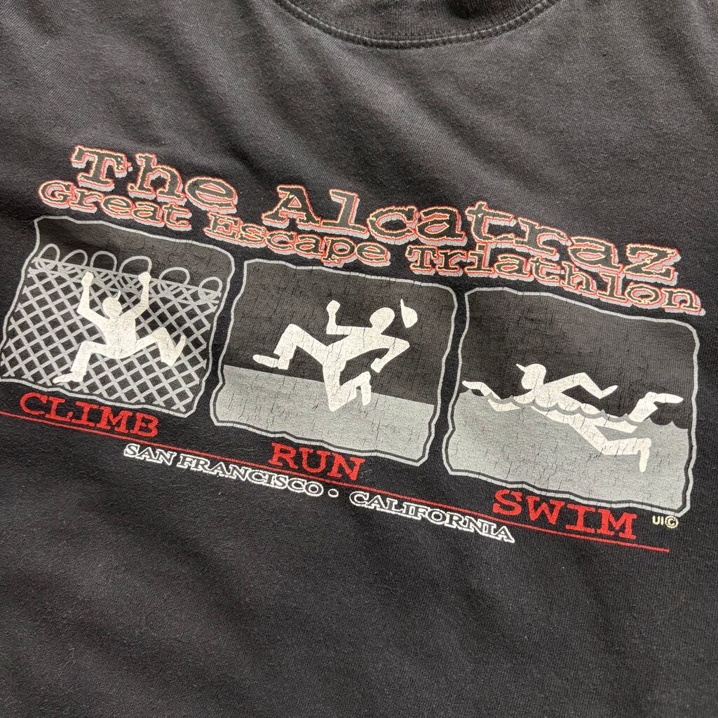 アルカトラズ 刑務所 Tシャツ Alcatraz Great Escape Triathlon 黒 L相当 サンフランシスコ お土産 アメカジ 古着 アメリカ古着 都内 中野区 古着屋 | POISON FROG 【中野区鷺宮の古着屋ポイズンフロッグ】【レギュラー、ヴィンテージ 】