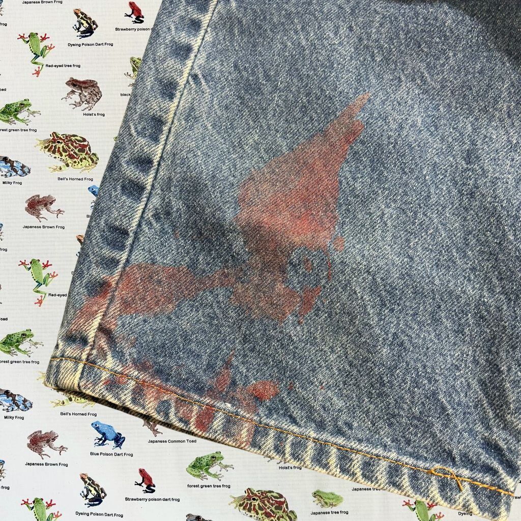 さらにところどころに入った汚れやダメージも、このジーンズがリアルに“履かれてきた感”を物語っています。