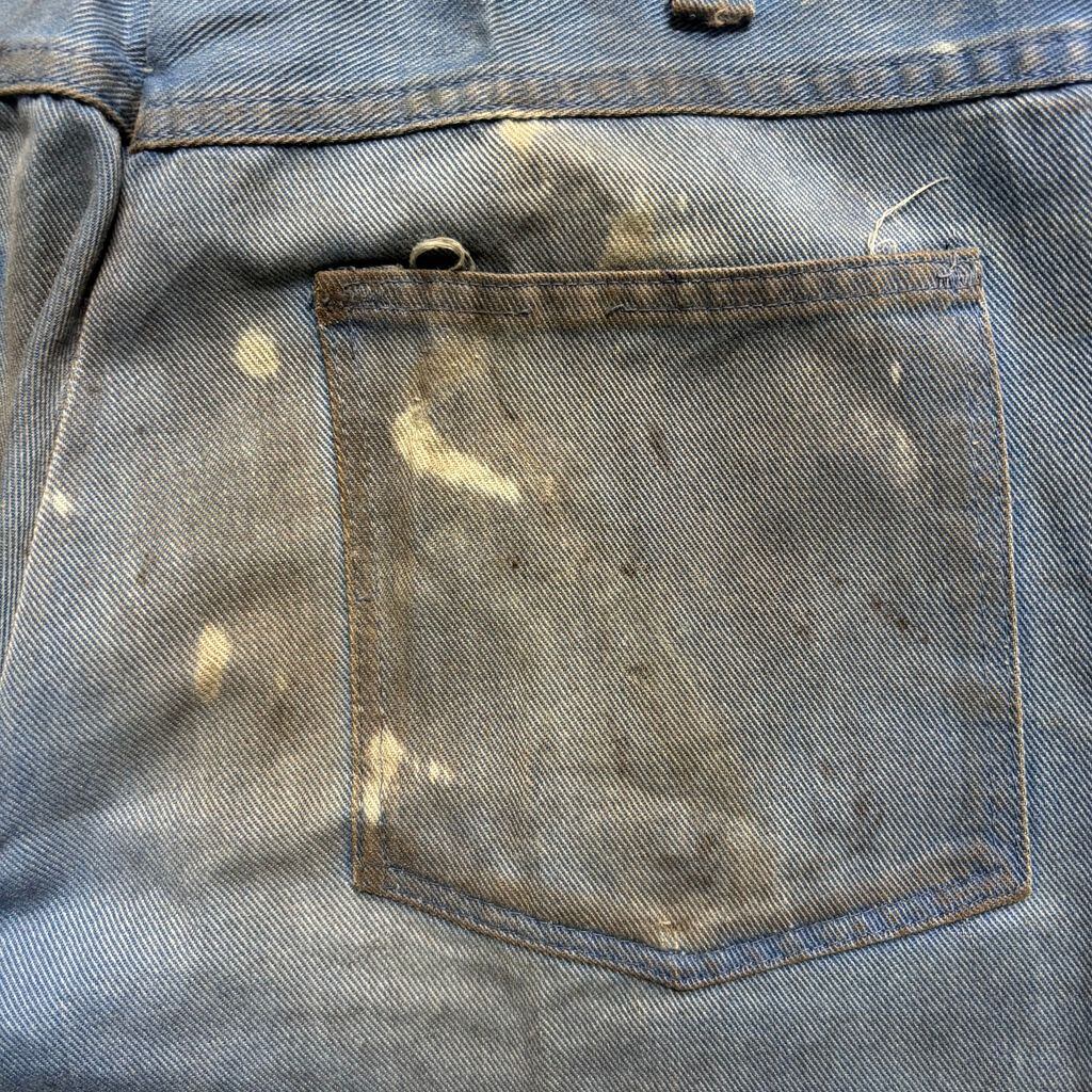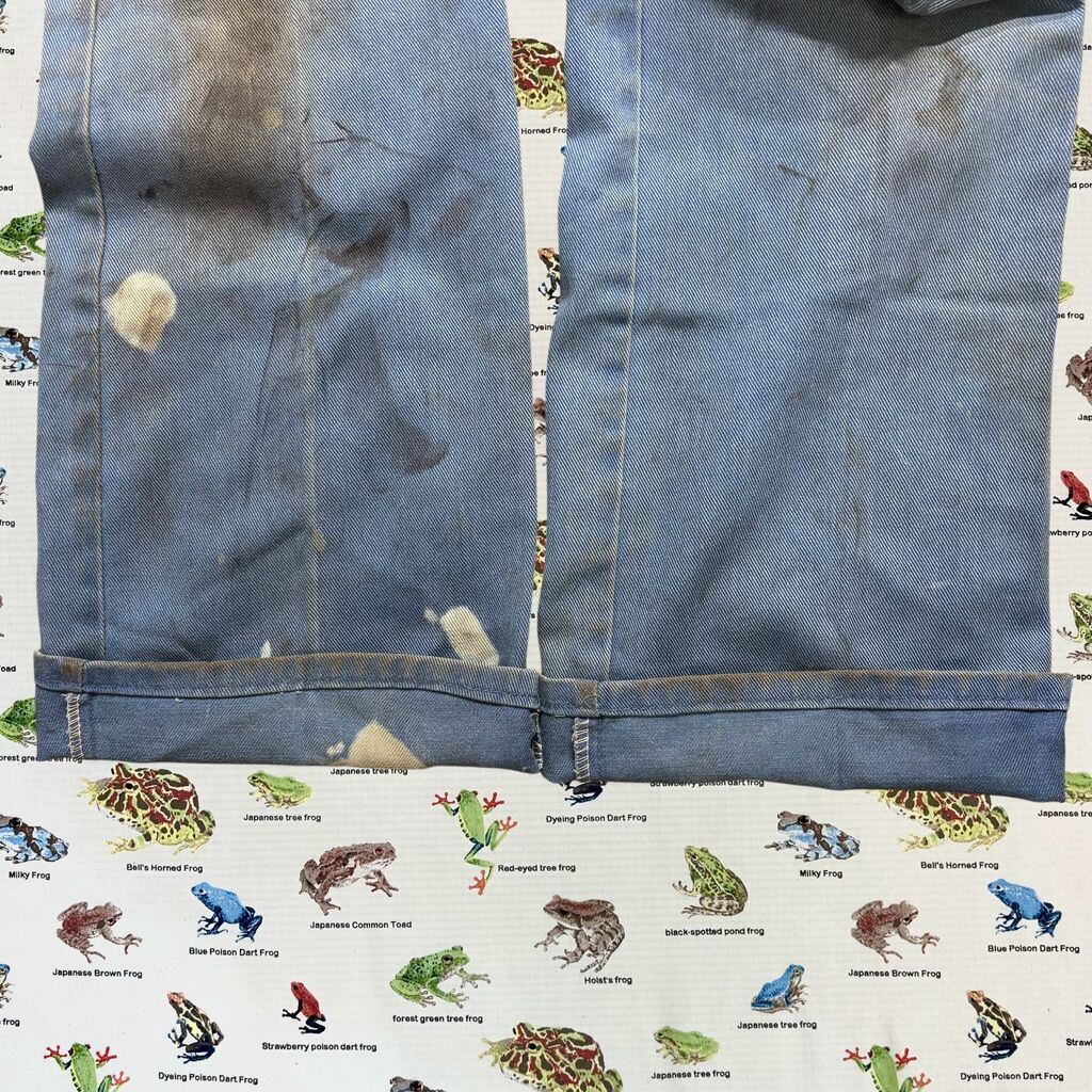 全体に広がるペンキ跡、土汚れ、油染み、そしてうっすらと擦れたポケットの縁。どれも加工じゃなくて“リアル”ってところが最高です。