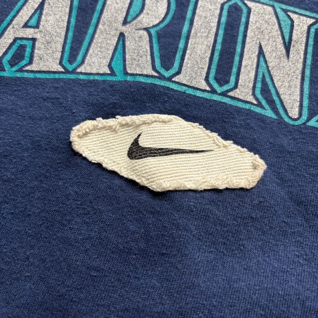 チーム名「MARINERS」のアーチロゴと、菱形の切りっぱなしパッチに配置されたスウッシュロゴの組み合わせがユニークな一枚。