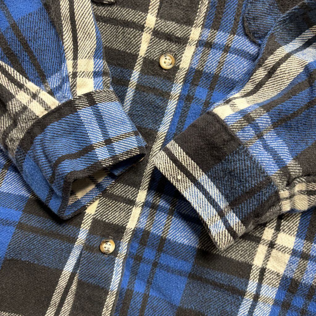 MADE IN USAのタフな作りに、ブルー×ブラック×ホワイトの王道チェック柄が映える一着です。やや厚手で起毛感のあるフランネル生地は、着込むほどに柔らかく馴染み、ヴィンテージならではの風合いを楽しめます。