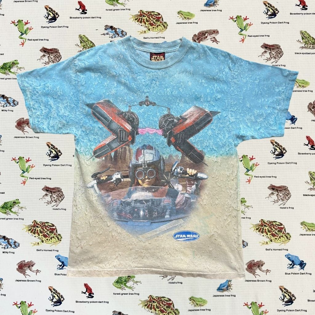 小さめサイズ スター・ウォーズ エピソード1 アナキン・ポッドレーサー フルプリントTシャツ ブルー×ベージュ グラデーション 90’sヴィンテージ