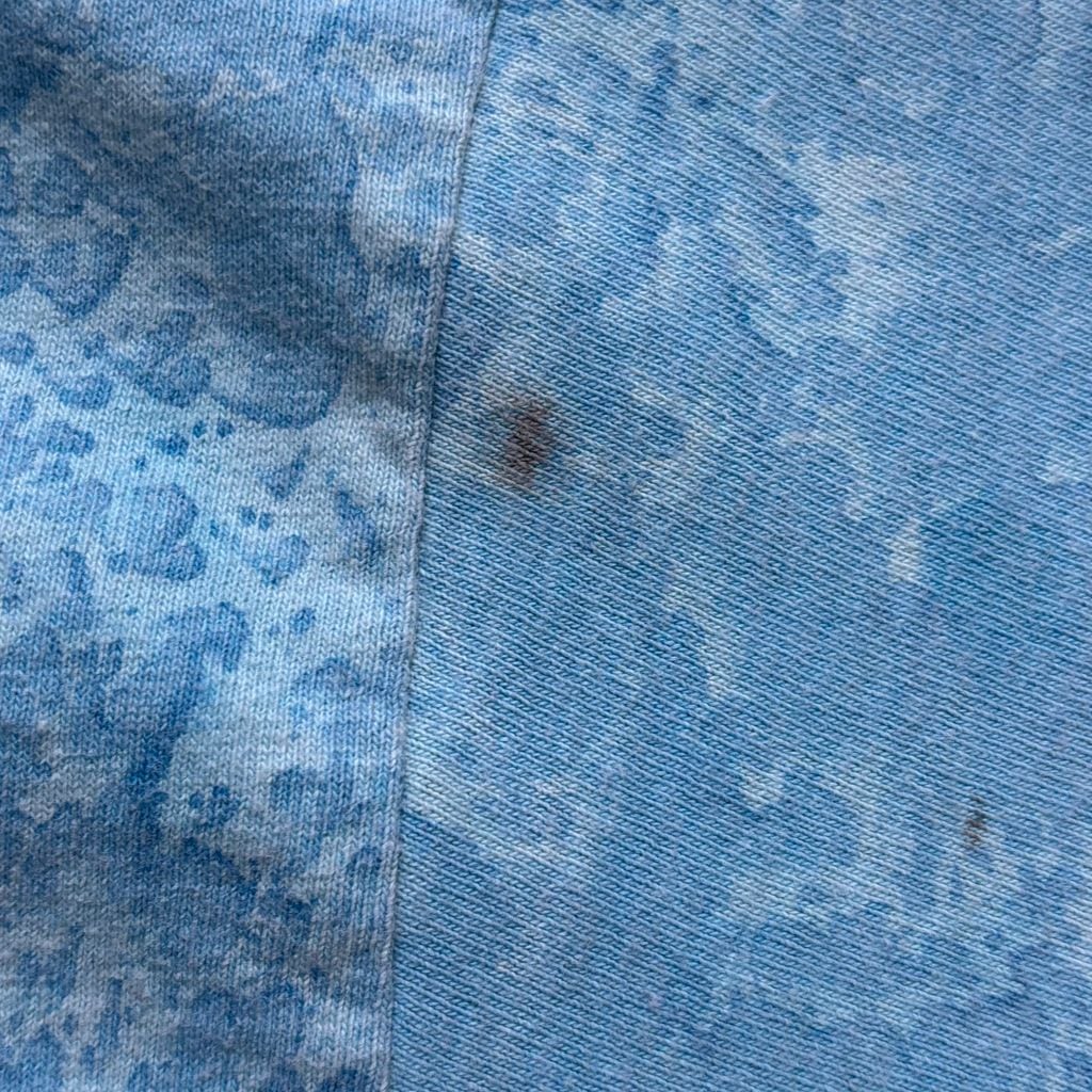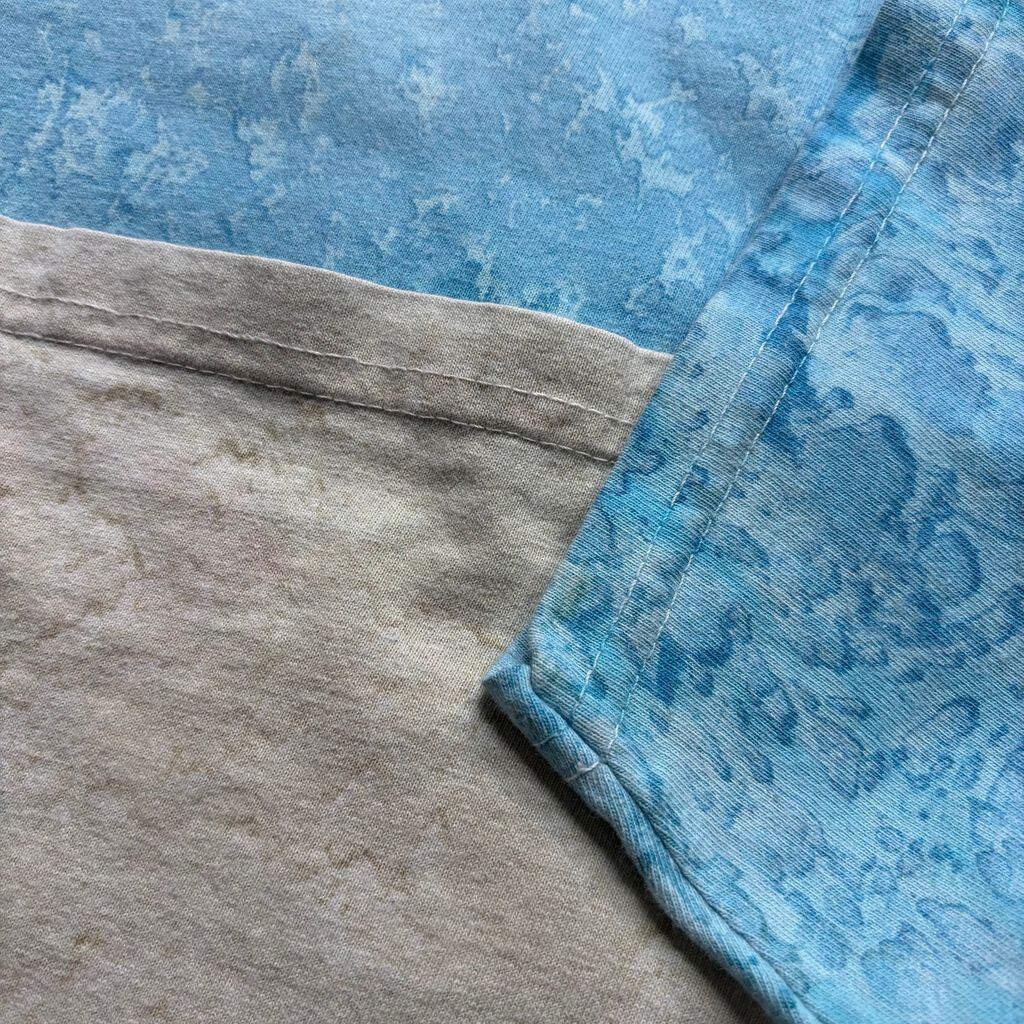 フロント全面に迫力あるグラフィック、ブルーからベージュへのグラデーションボディに、独特のウォッシュ加工で味わい深い表情に仕上がっています。