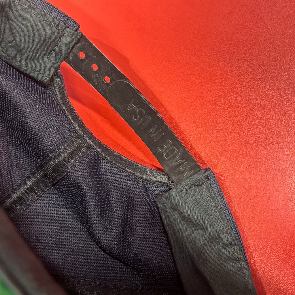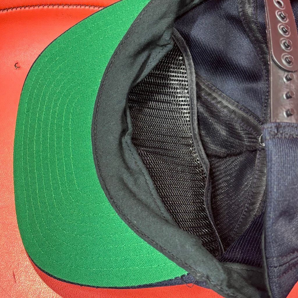 スナップバックにはしっかりと「MADE IN USA」の刻印入り。裏はグリーンアンダーバイザー仕様。