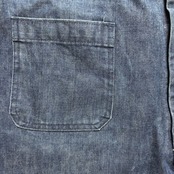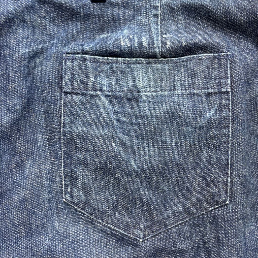 インディゴデニムというよりバットダイ(硫化染め)のような深みのある色落ちというよりも全体的にフラットでマットなネイビーブルーです。