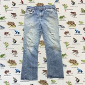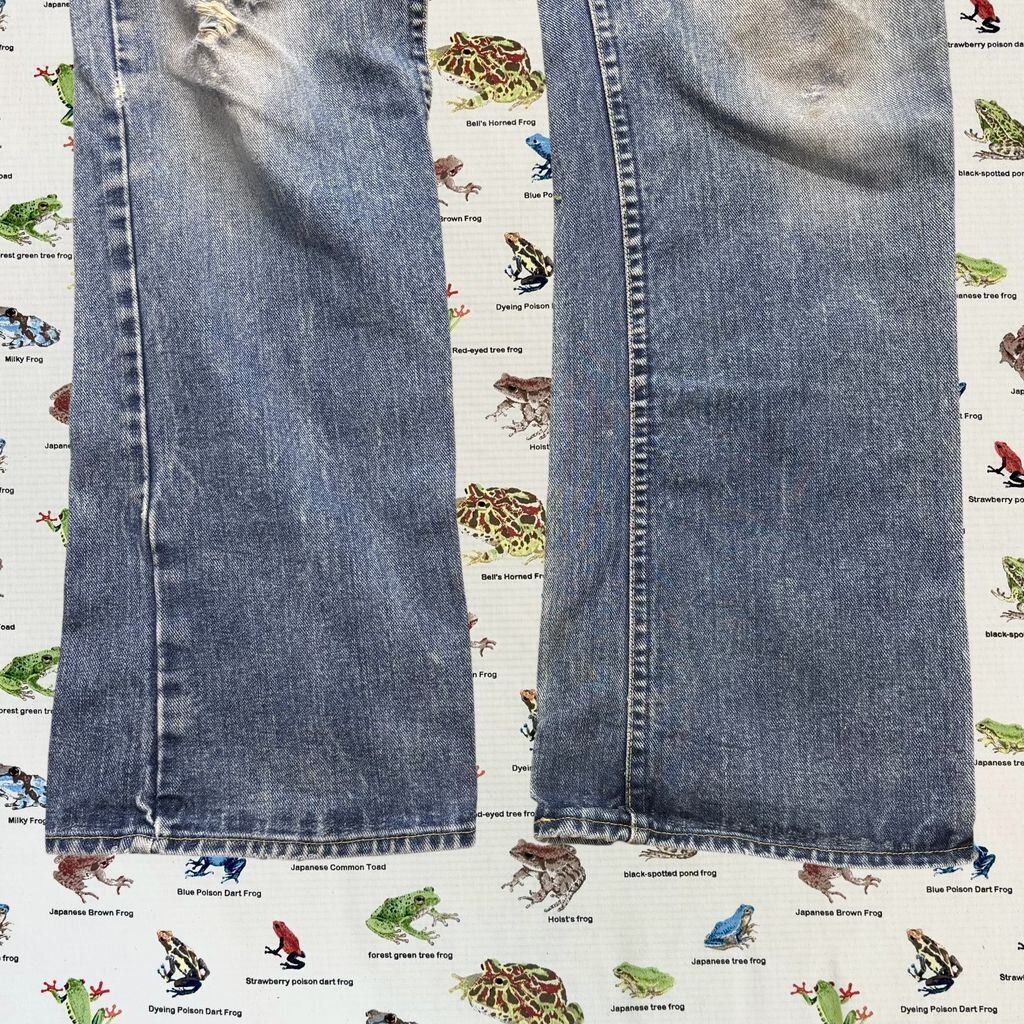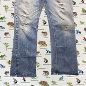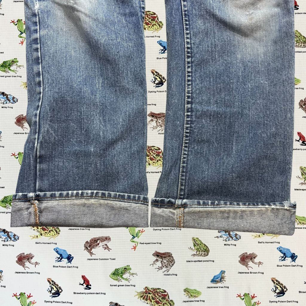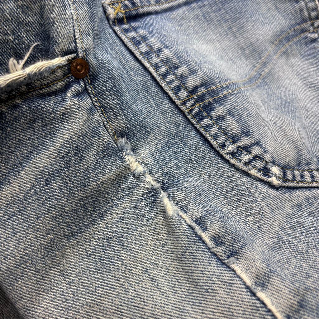 全体的にフェード感があり、ひざ周りやポケットにダメージが入っていて、リアルな経年変化を味わえます。雰囲気重視でヴィンテージを楽しみたい方におすすめ。