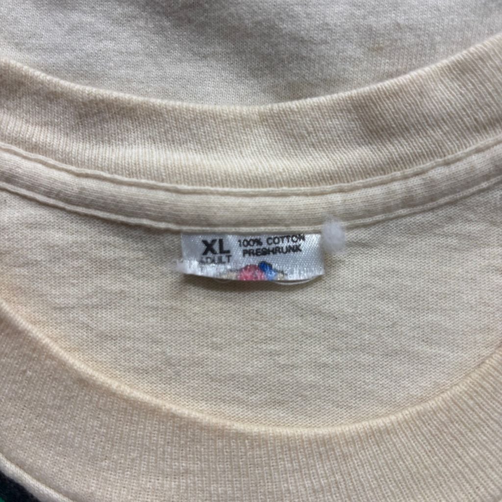 タグは切れてますがFruit of the Loom 100% Cotton(XL)。しっかりとした80s後期らしい丸胴ボディで、経年のフェード感と共にヴィンテージらしい味わいを楽しめます。
