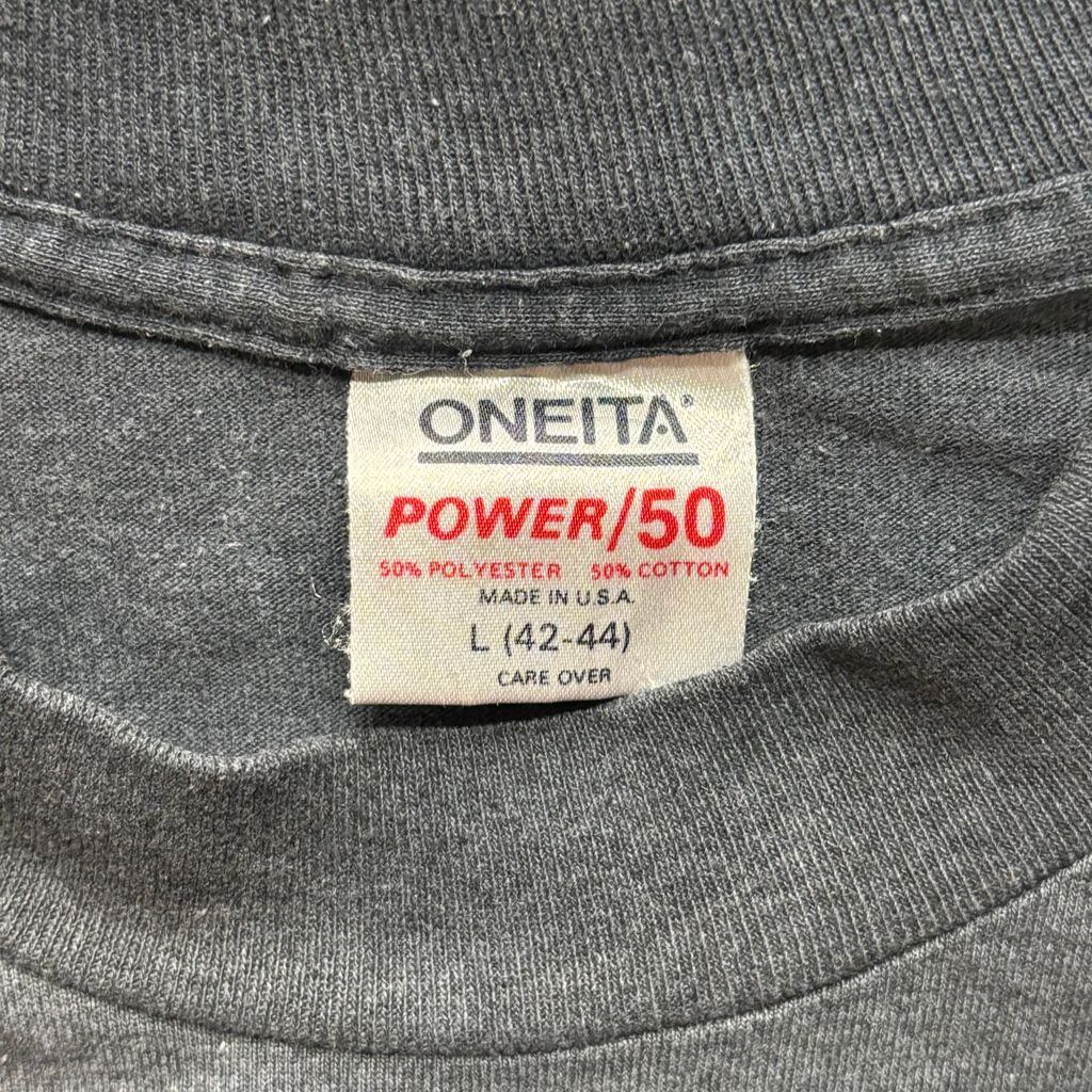 ボディは90年代らしい ONEITA Power/50(USA製・ポリコットン)。程よい厚みと柔らかい着心地が魅力で、ヴィンテージ特有の風合いも楽しめます。