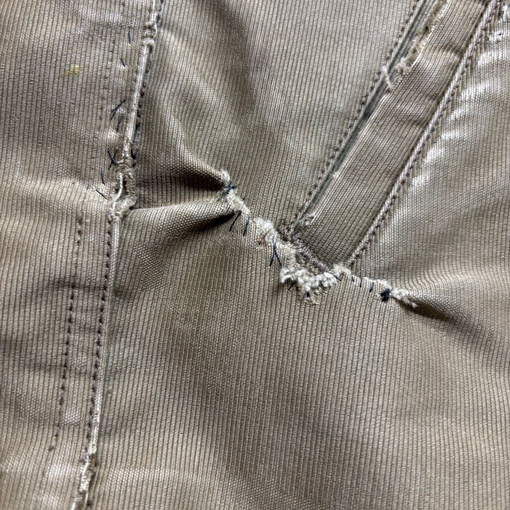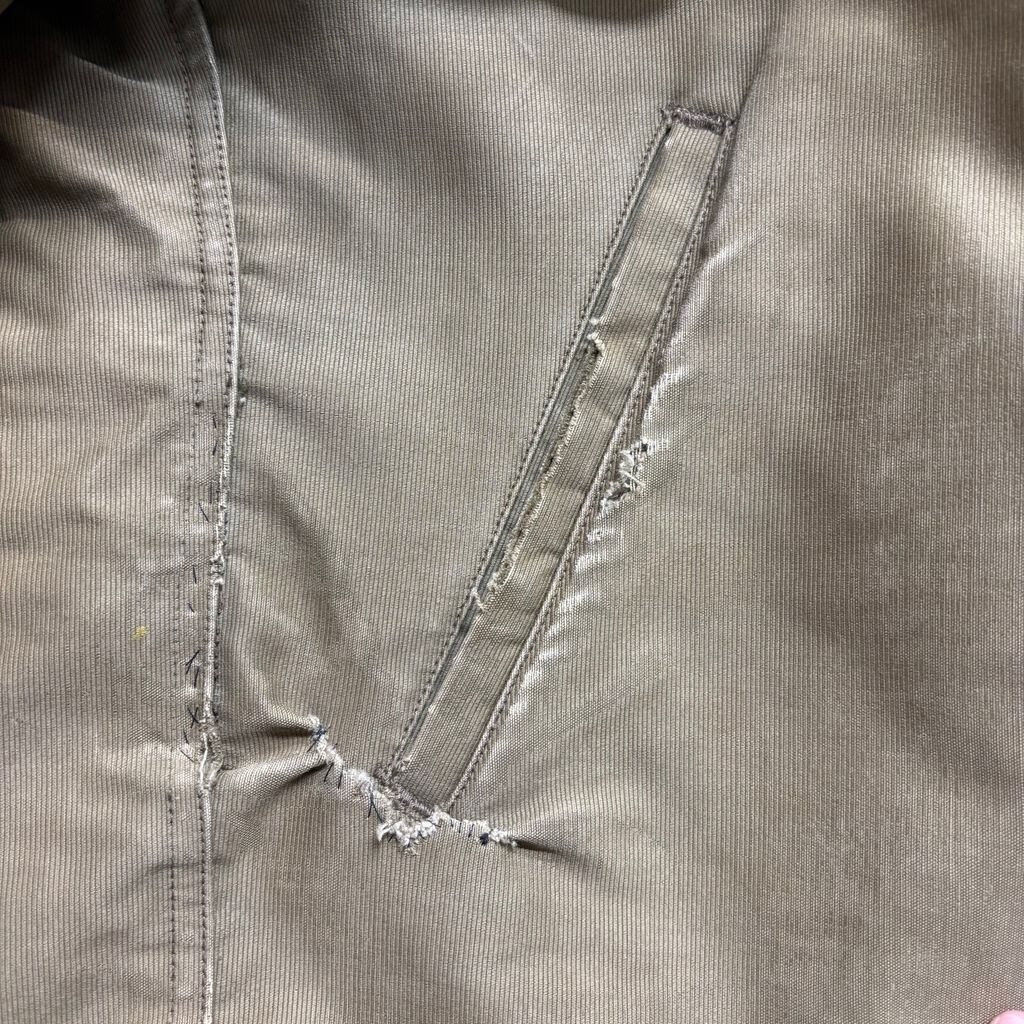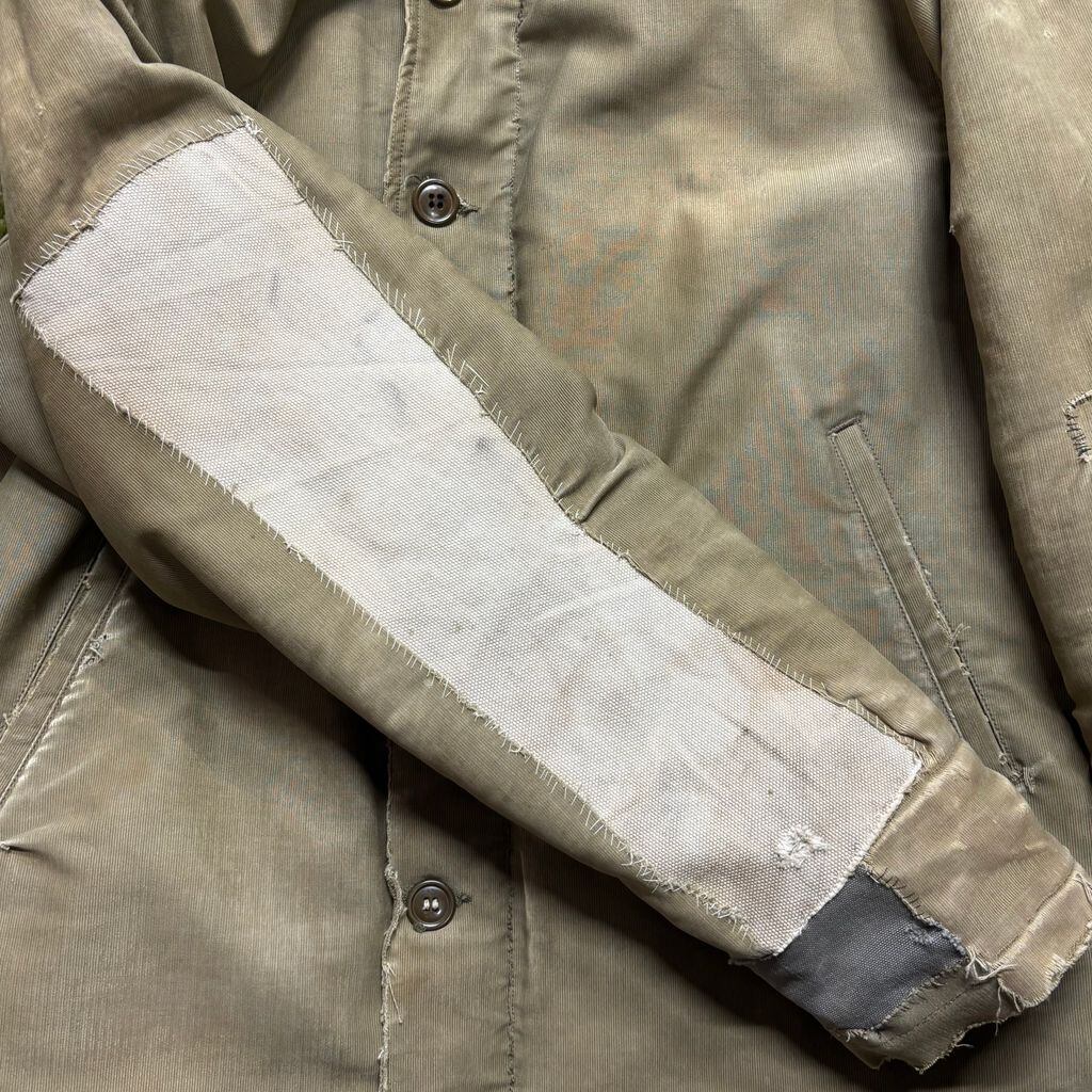 袖には補修とパッチの跡が生々しく、まるで映画の衣装のような説得力。