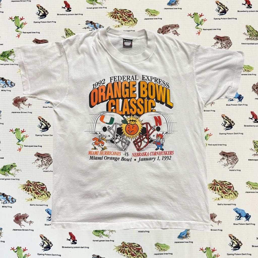 90’s USA製 オレンジボウル Tシャツ 1992 Miami Hurricanes × Nebraska Cornhuskers カレッジフットボール アメカジ 古着 アメリカ古着 都内 中野区 古着屋 | POISON FROG 【中野区鷺宮の古着屋ポイズンフロッグ】【レギュラー、ヴィンテージ 】