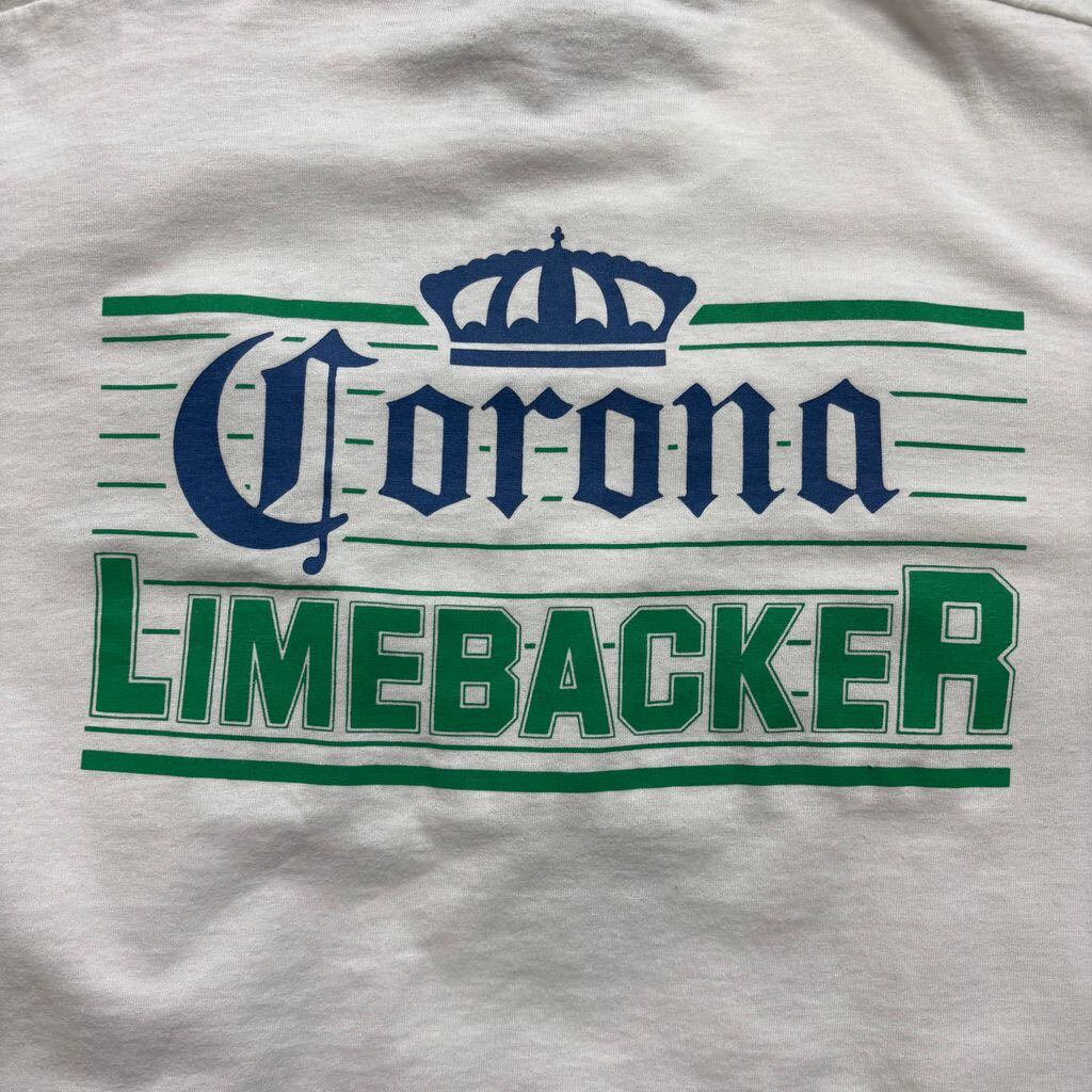 90’s USA製 コロナ Tシャツ Corona Extra “LIMEBACKER” 両面プリント FRUIT OF THE LOOM BEST 白 XL ビール バー アメカジ 古着 アメリカ古着 都内 中野区 古着屋