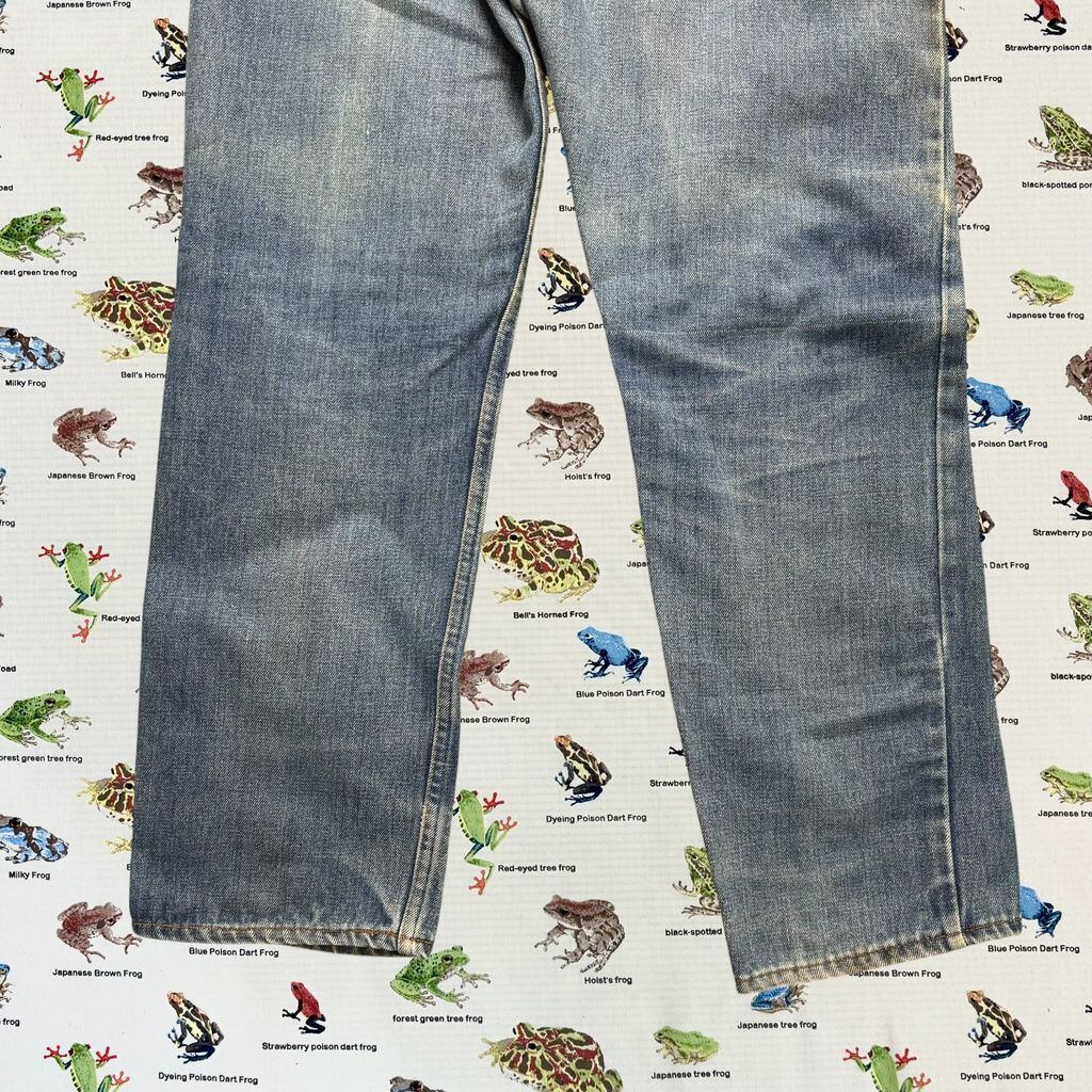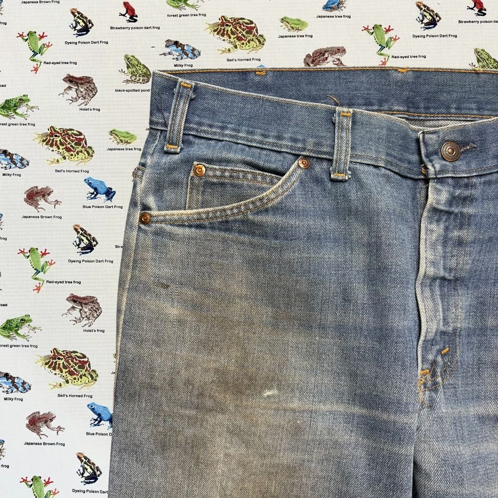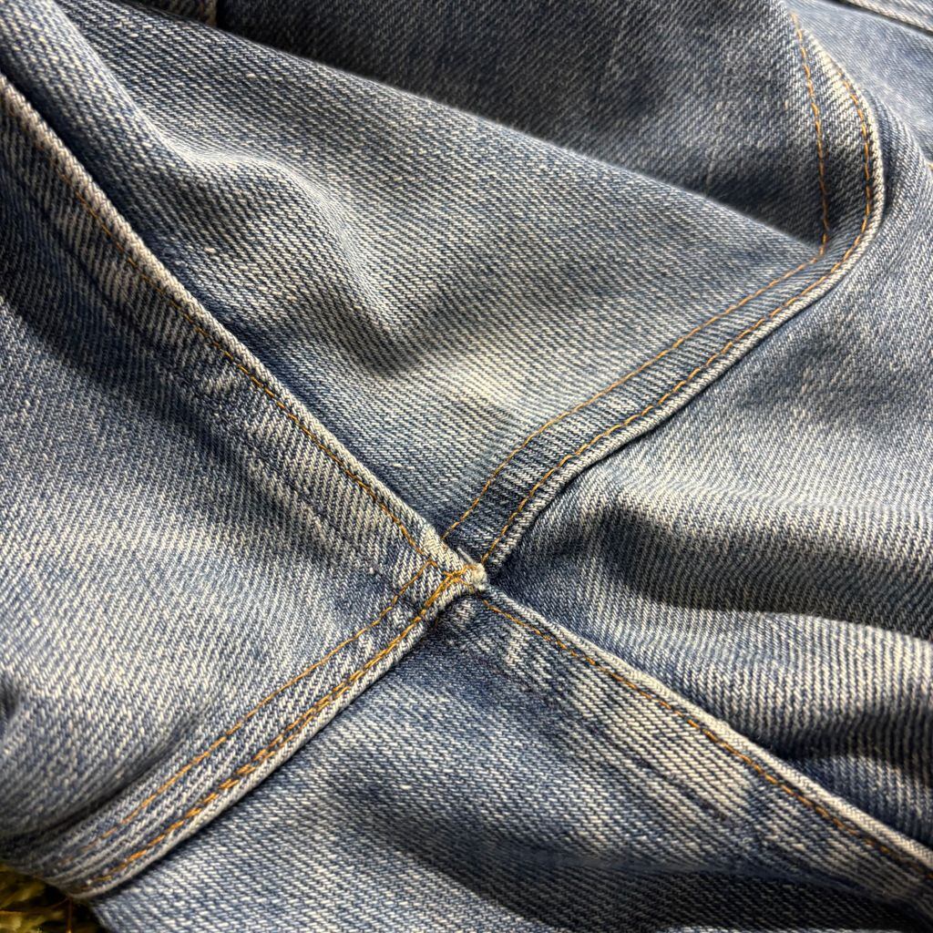 色落ちや汚れ、ダメージなどが全体に見られますが、それも含めてヴィンテージデニムならではの雰囲気。