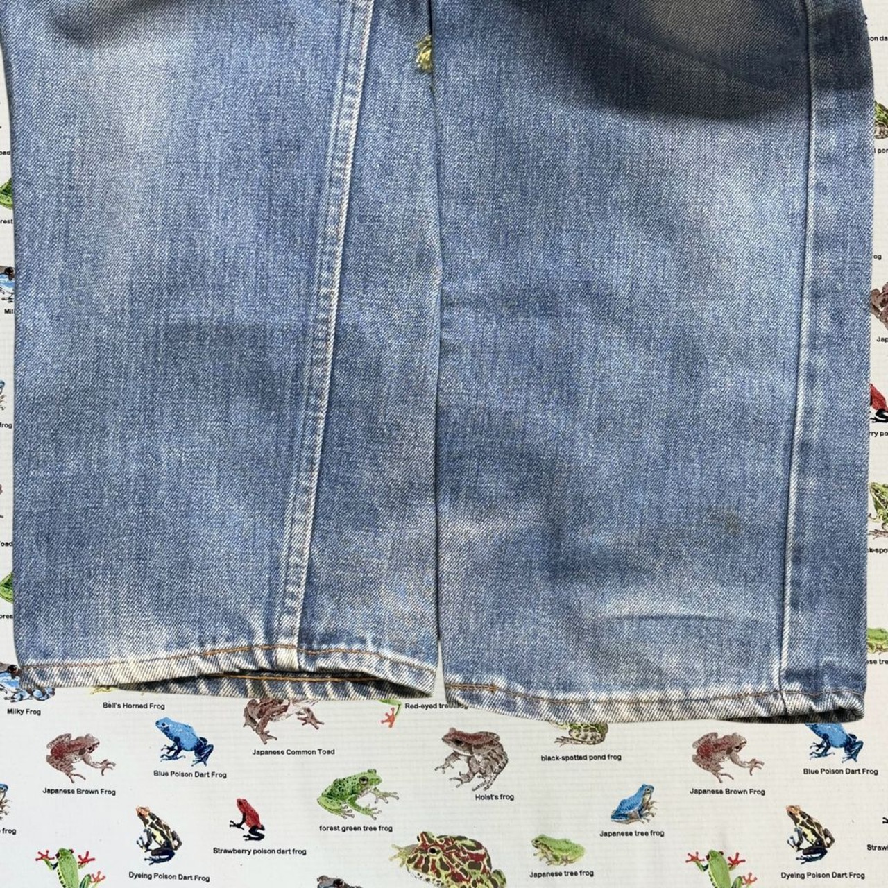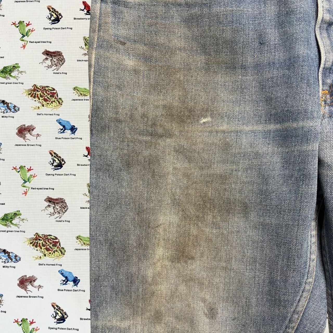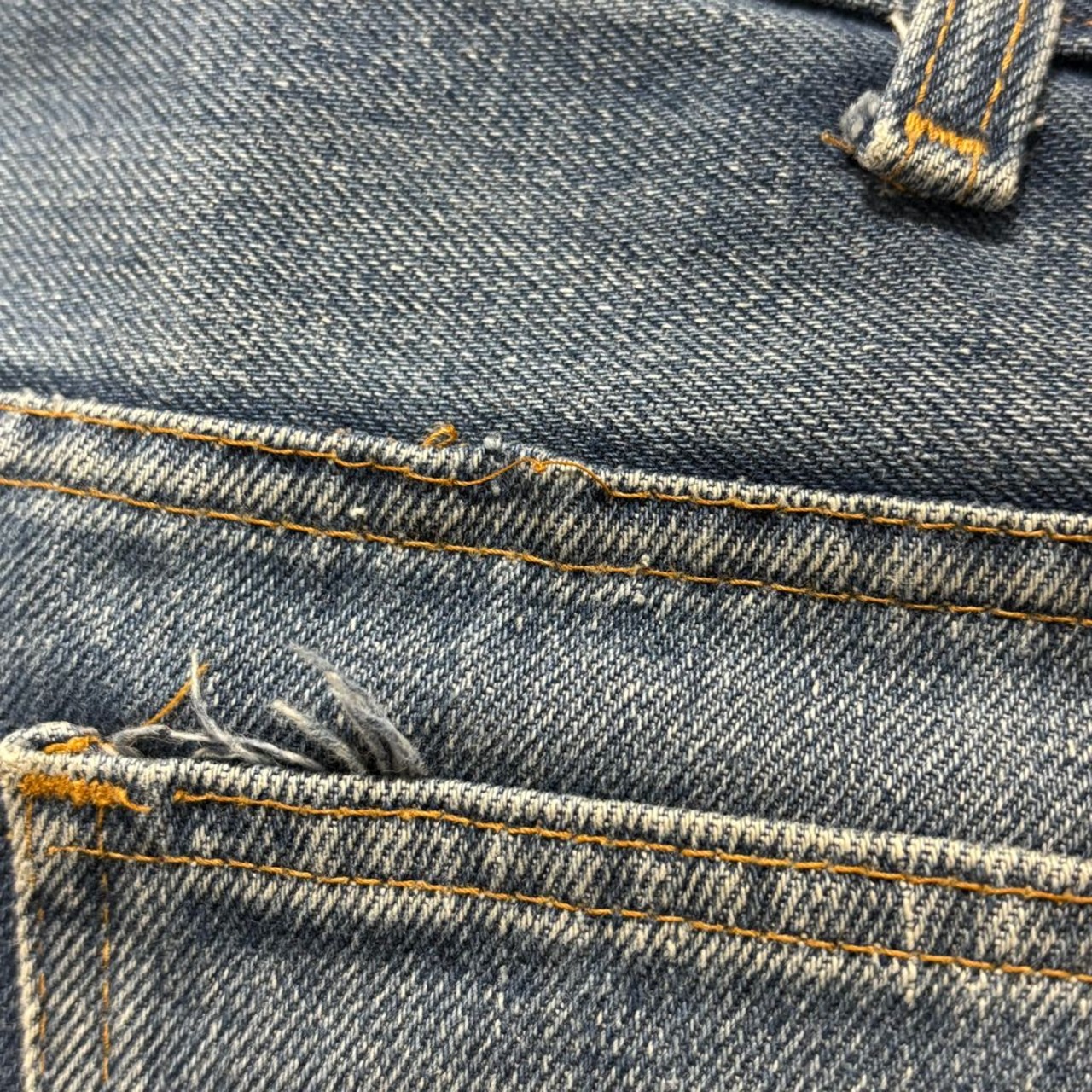 色落ちや汚れ、ダメージなどが全体に見られますが、それも含めてヴィンテージデニムならではの雰囲気。