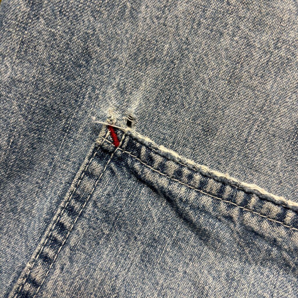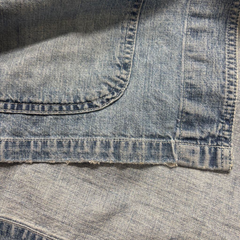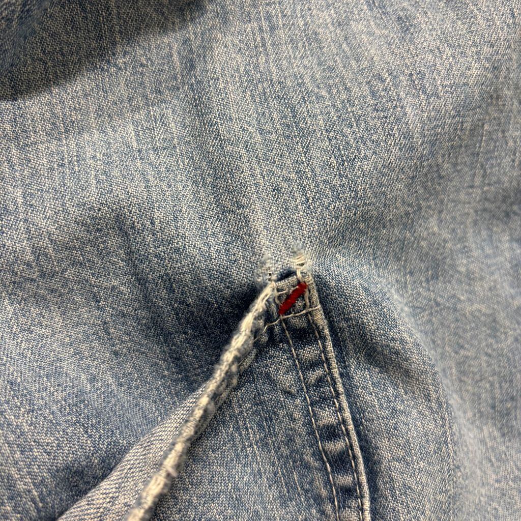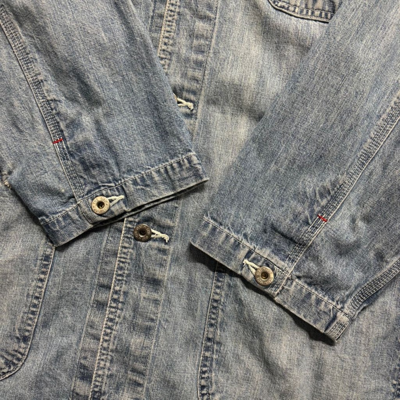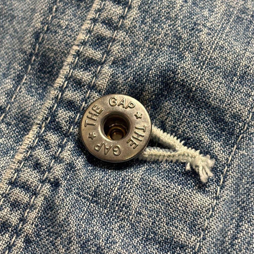 ・ディテール:THE GAP刻印ボタン、トリプルステッチ、ライトブルーデニムの絶妙な色落ち