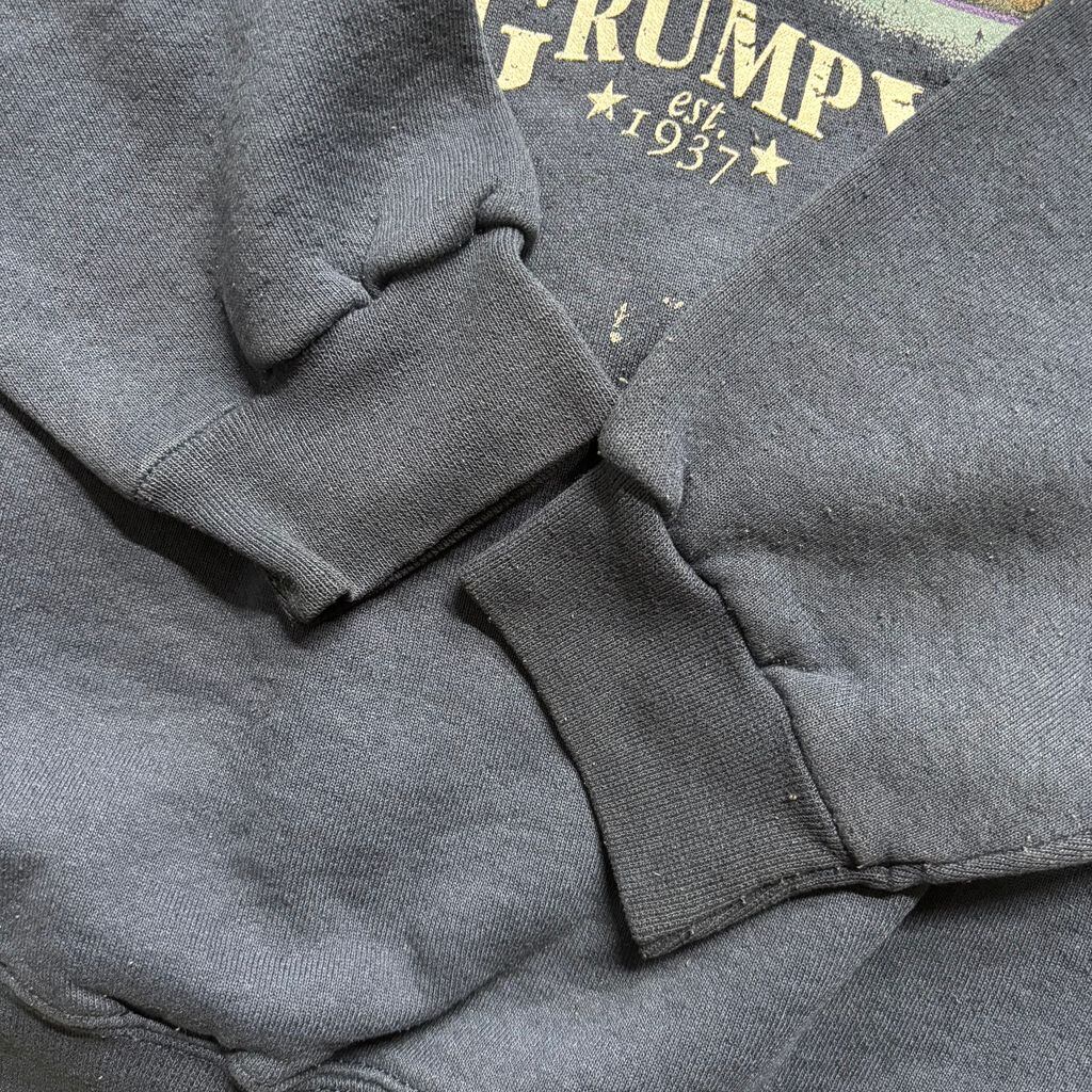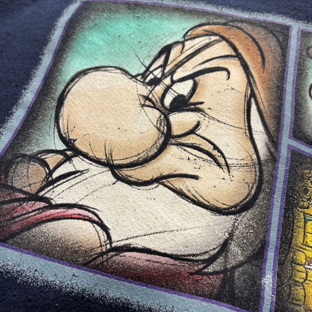 ネイビーカラーのボディにカラフルなデザインが映えて、キャラもの古着らしいユニークな雰囲気。