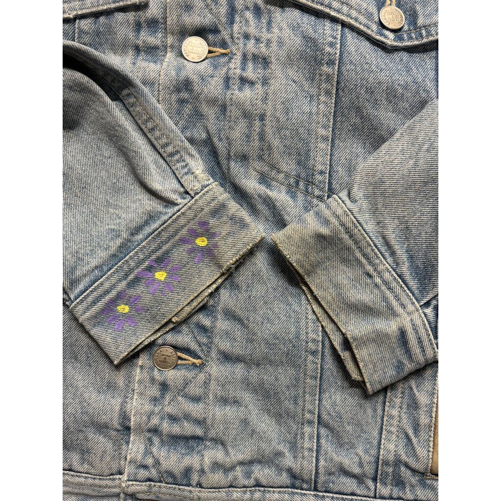 袖口にはハンドペイントで描かれたフラワーモチーフがあり、オンリーワンのリメイク感がプラスされた特別な個体。