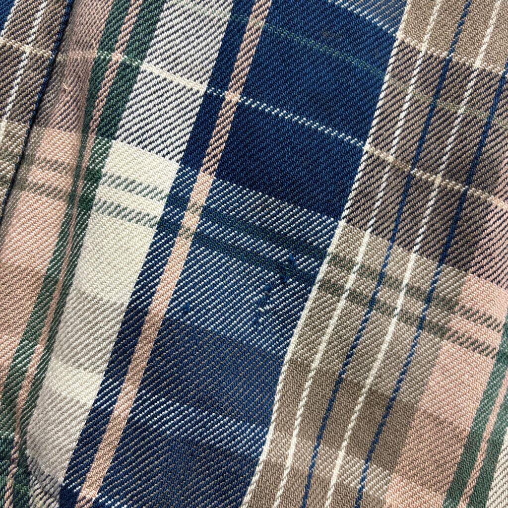 ベージュ×ネイビー×グリーンの落ち着いたトーンのチェックが絶妙で、