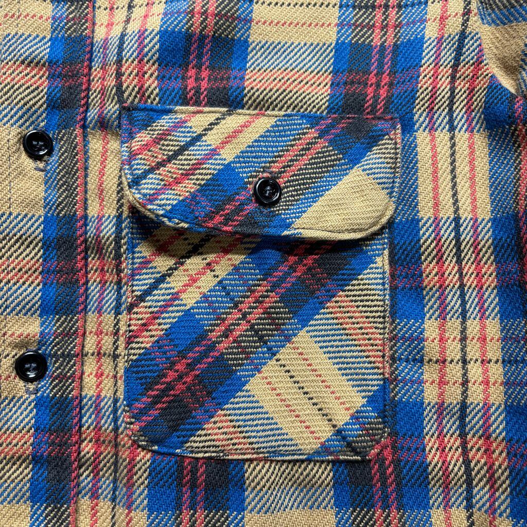 肉厚で柔らかいコットンフランネルを使用し、経年によるアタリや色抜けも抜群の雰囲気。