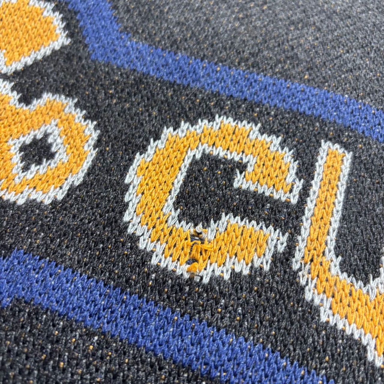 プリントではなく編み込みで表現されたグラフィックがポイントで、